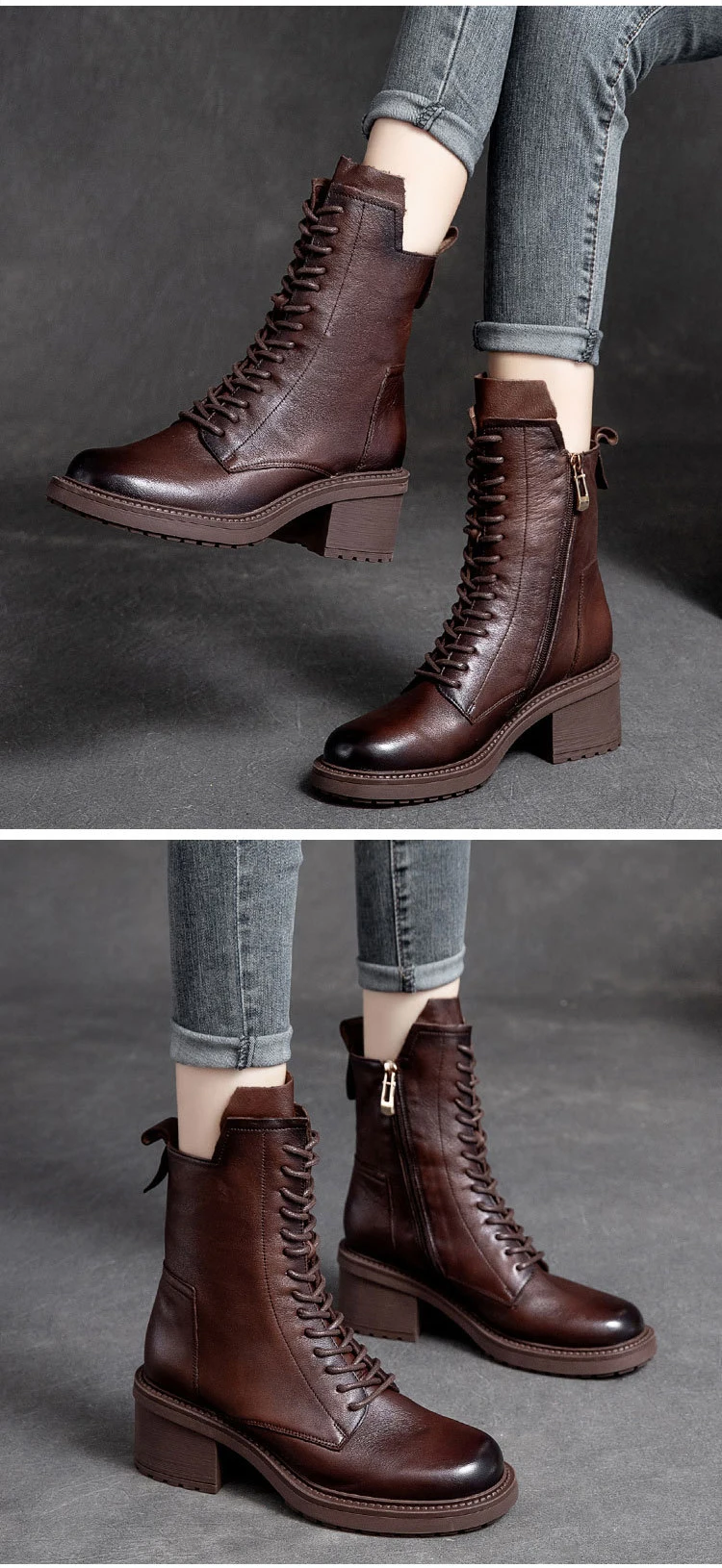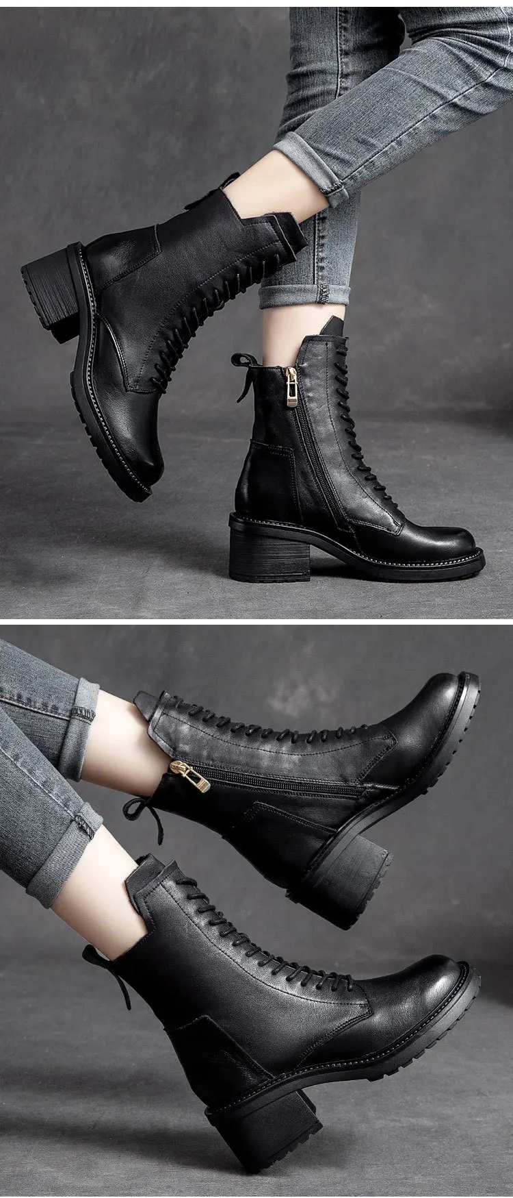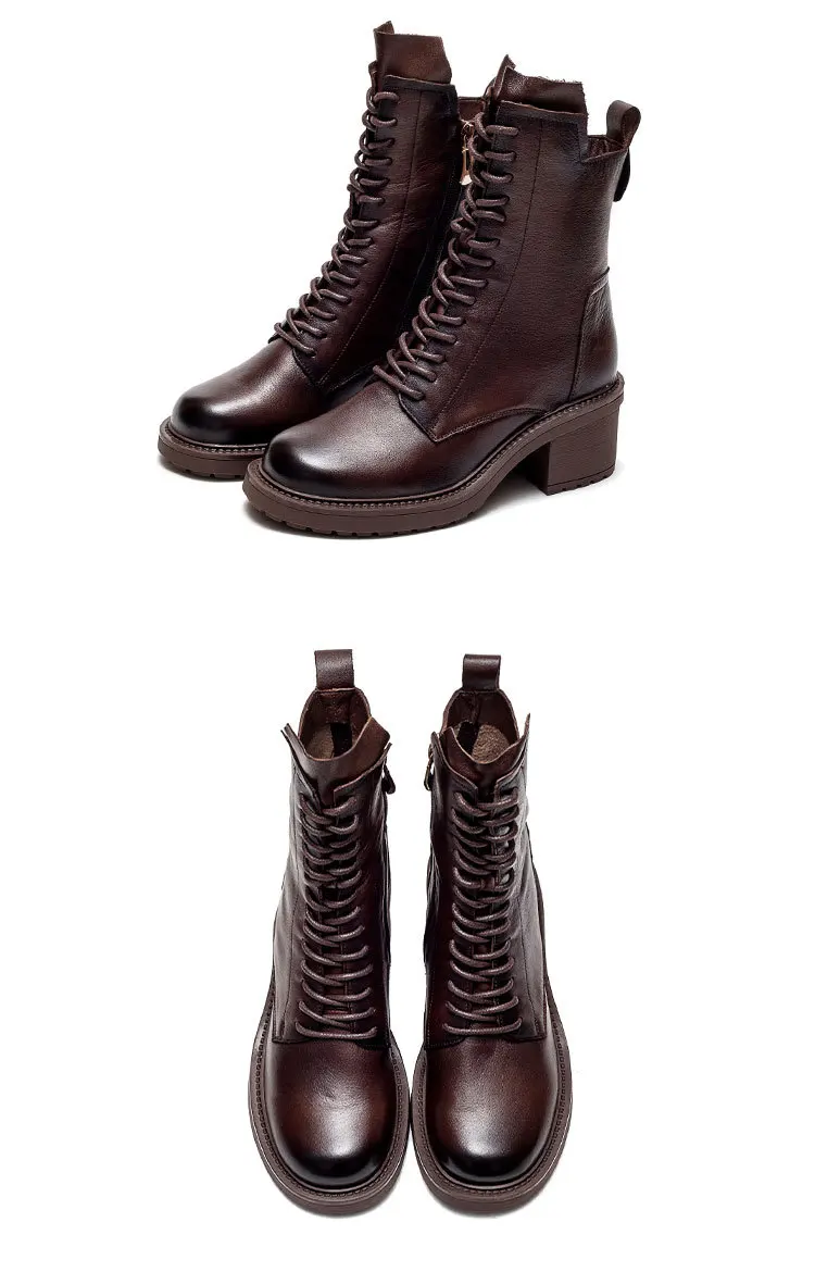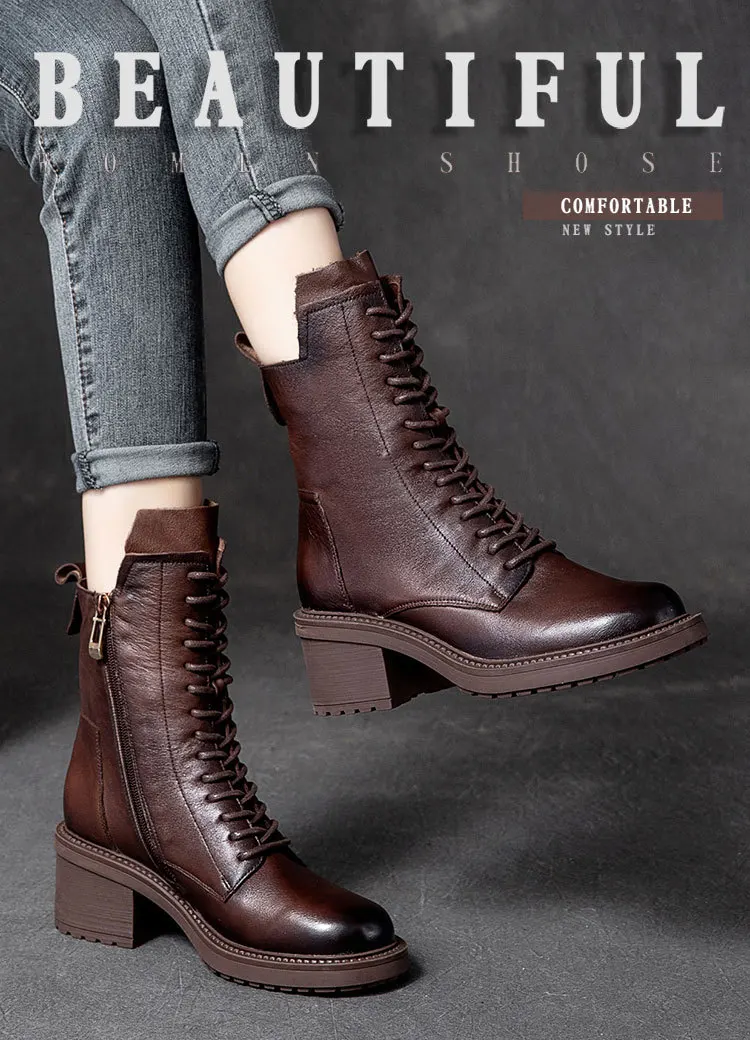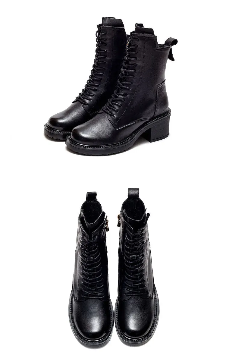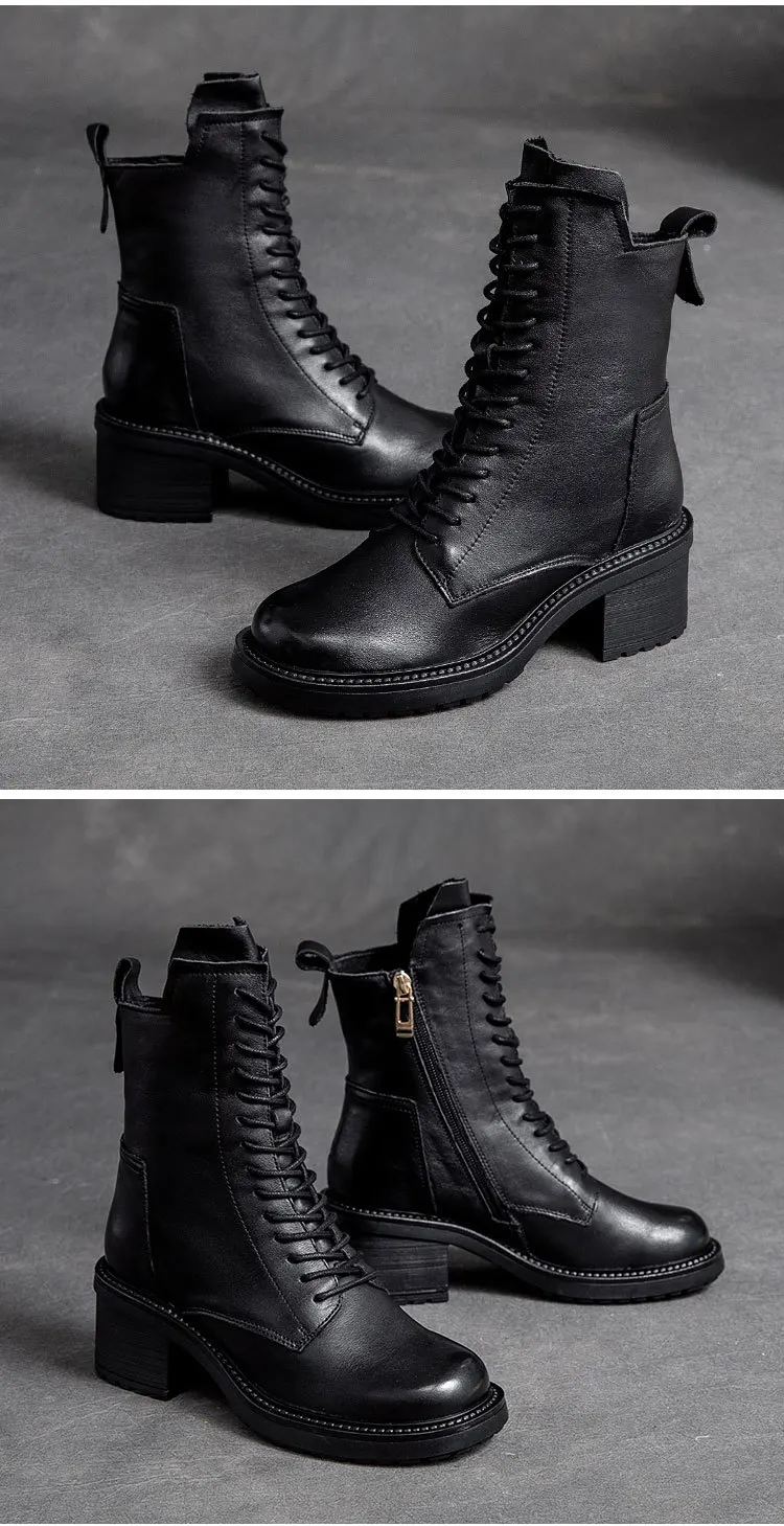 GKTINOO 2024 Cow Leather Quality Women Shoes Autumn Winter Square Med Heel Ankle Boots Lace Up Zipper Ladies Pumps Size 35-40