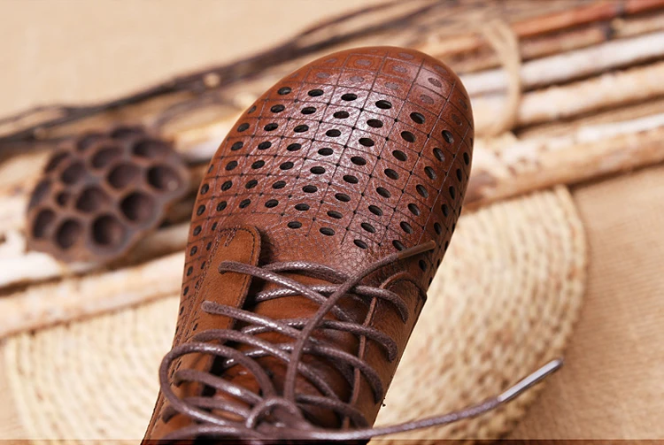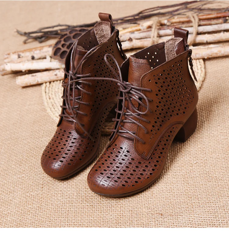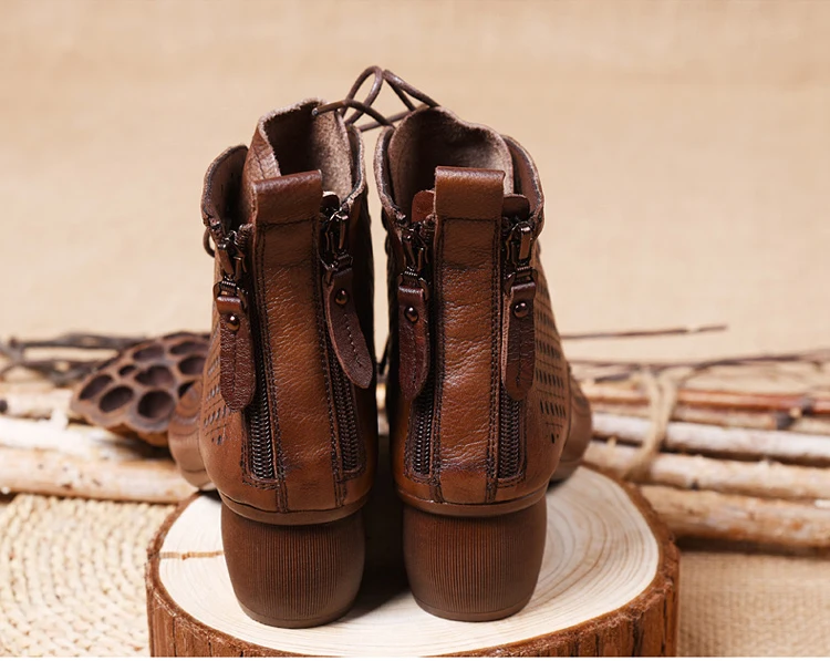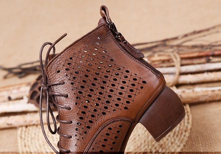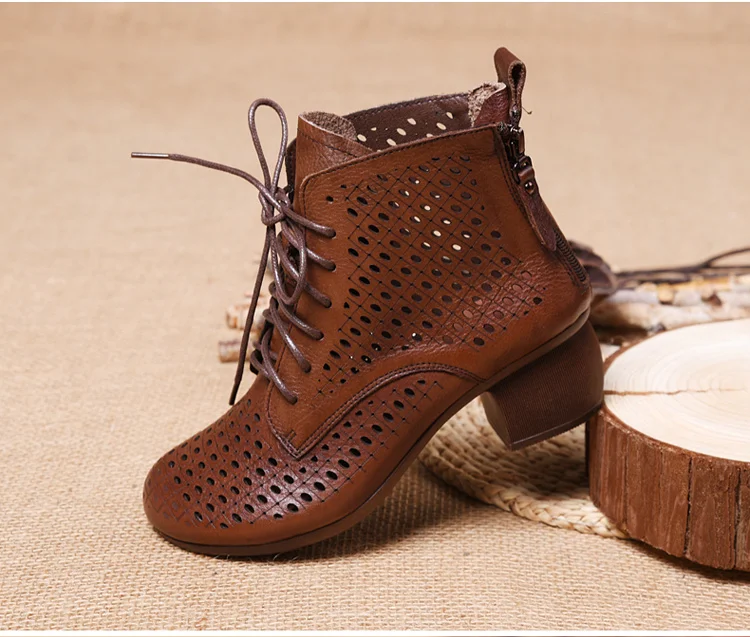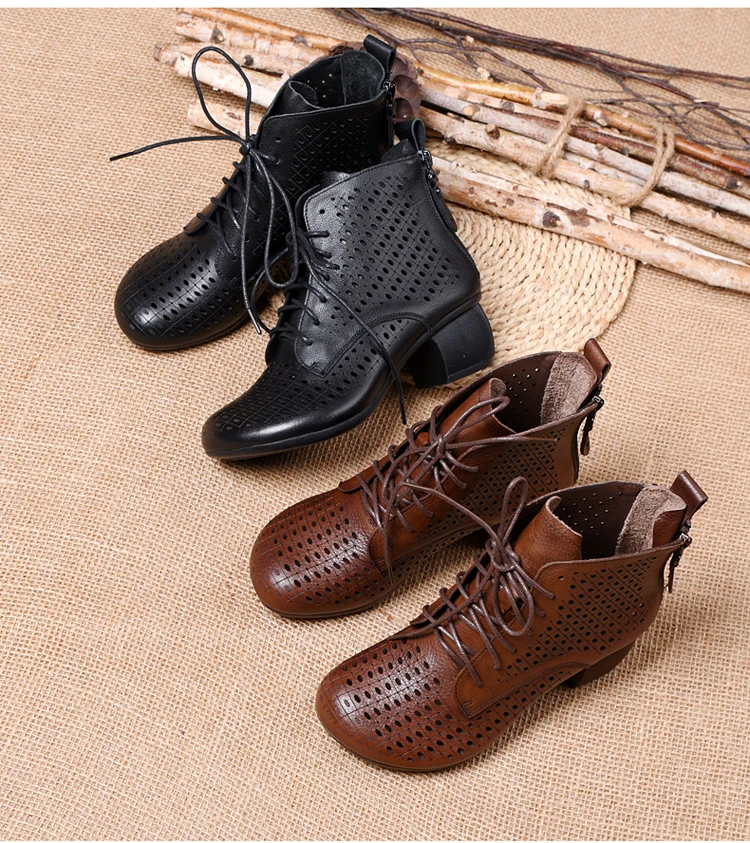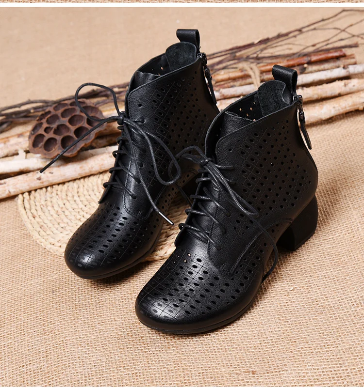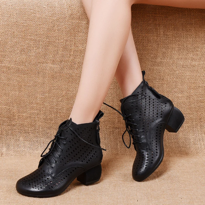 GKTINOO 2024 Summer Ankle Boots Genuine Leather Shoes Women Med High Heel Back Zipper Boots Cutout breathable Mujer Zapatos