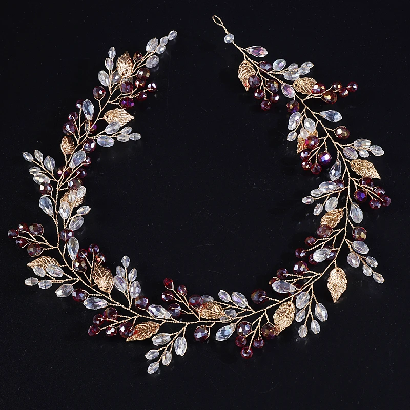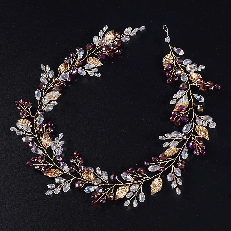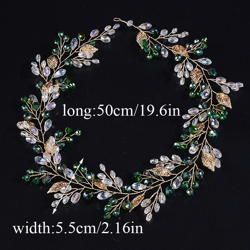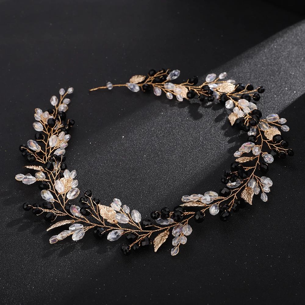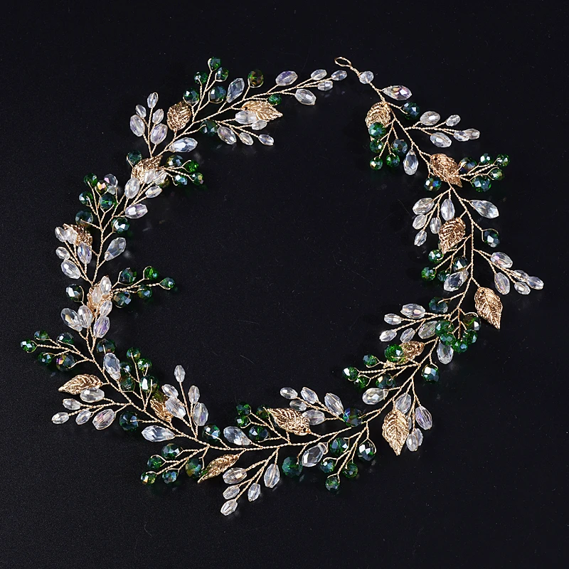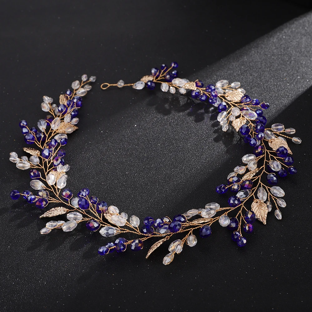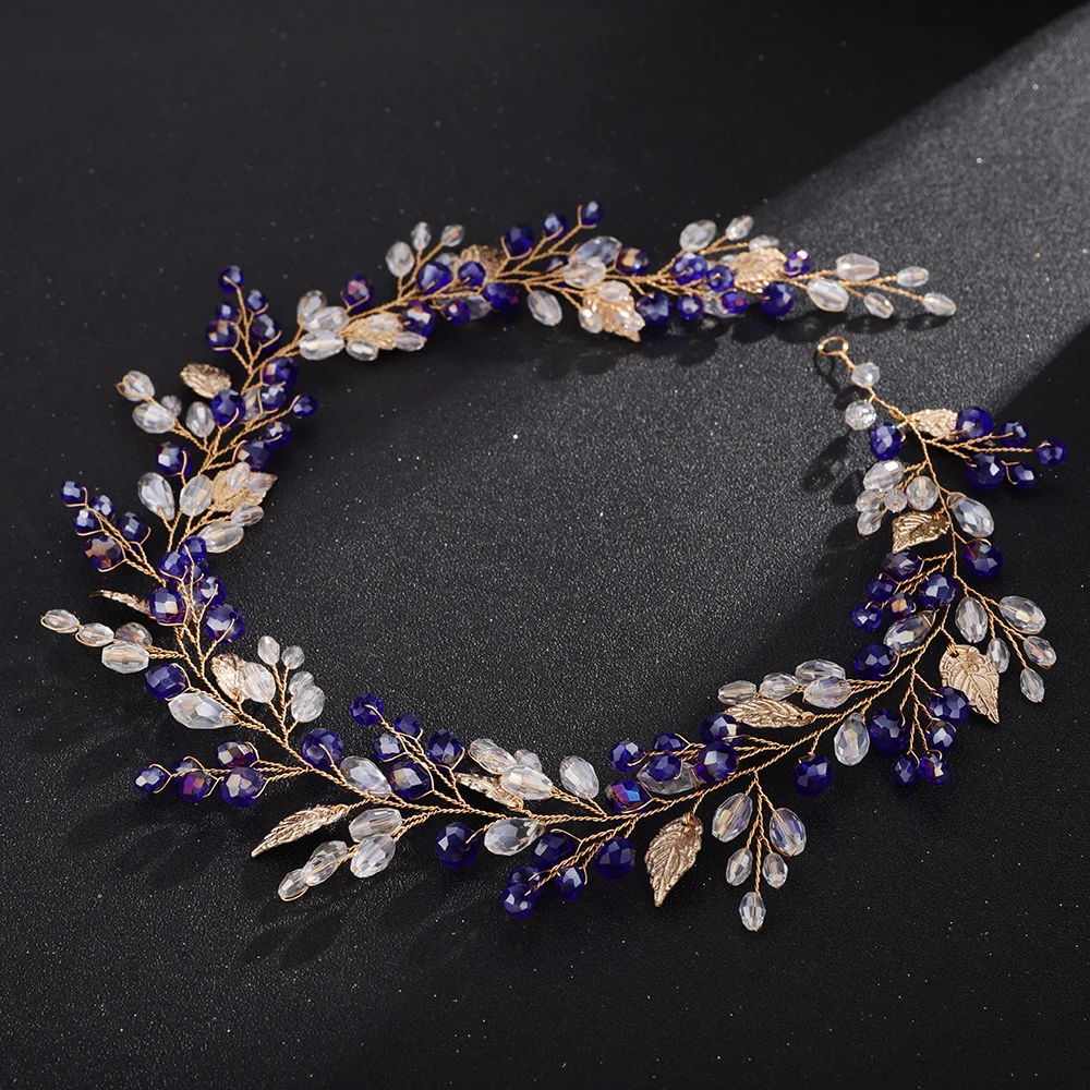 Gold Wedding Headpieces for Bride Handmade Bridal Headband with Leaf Crystal Hair Accessories Hair Vine for Women
