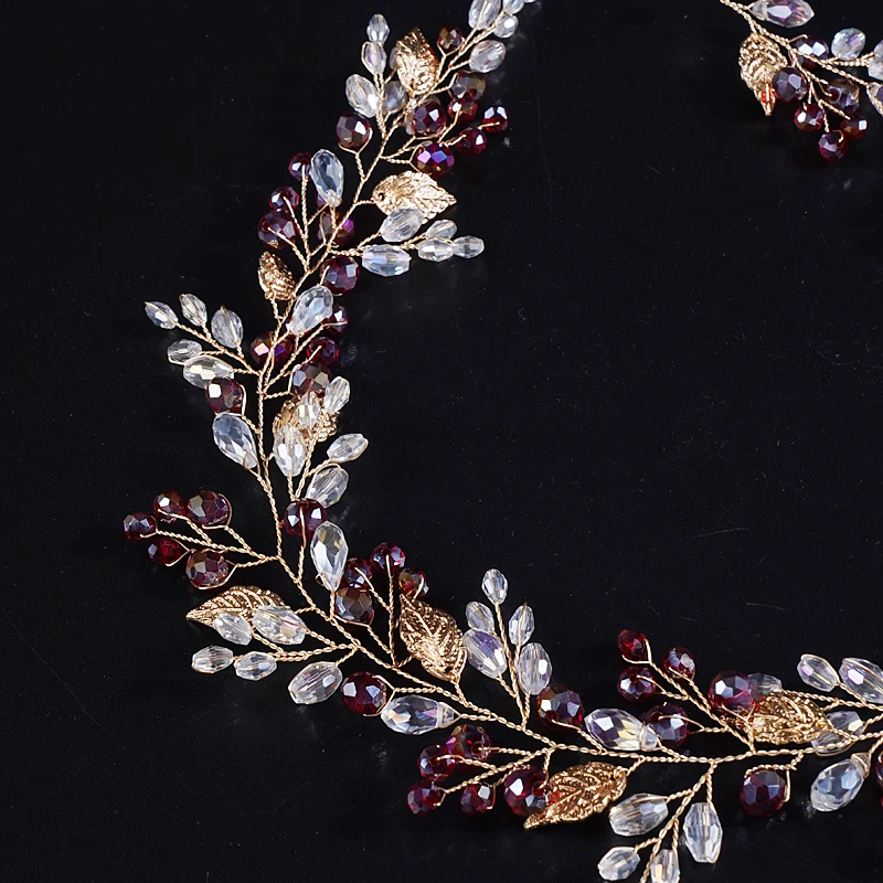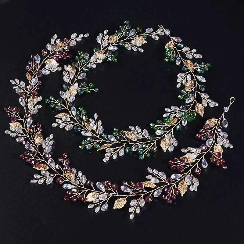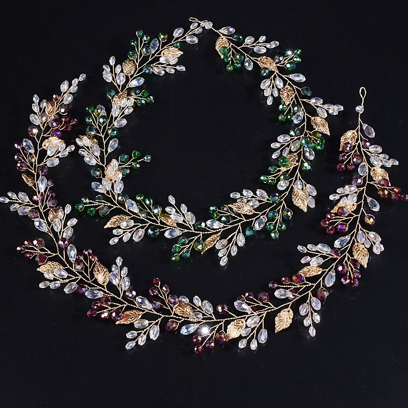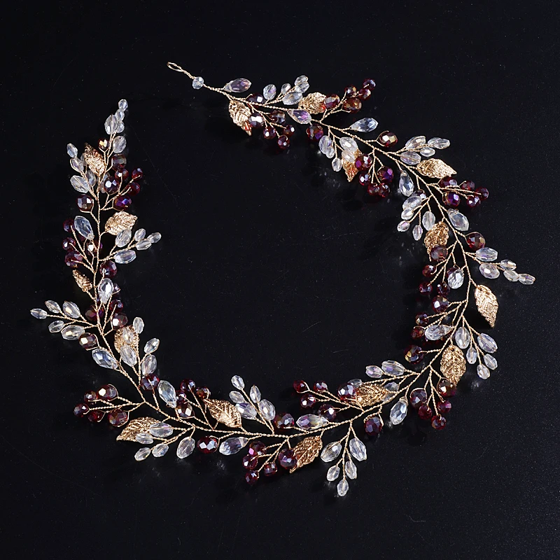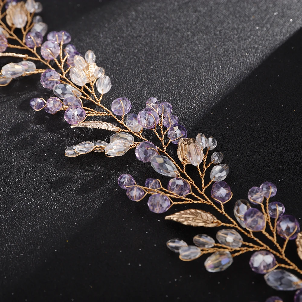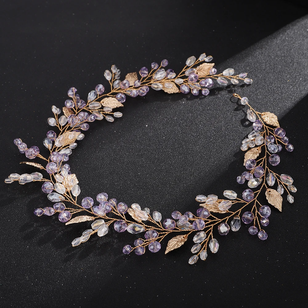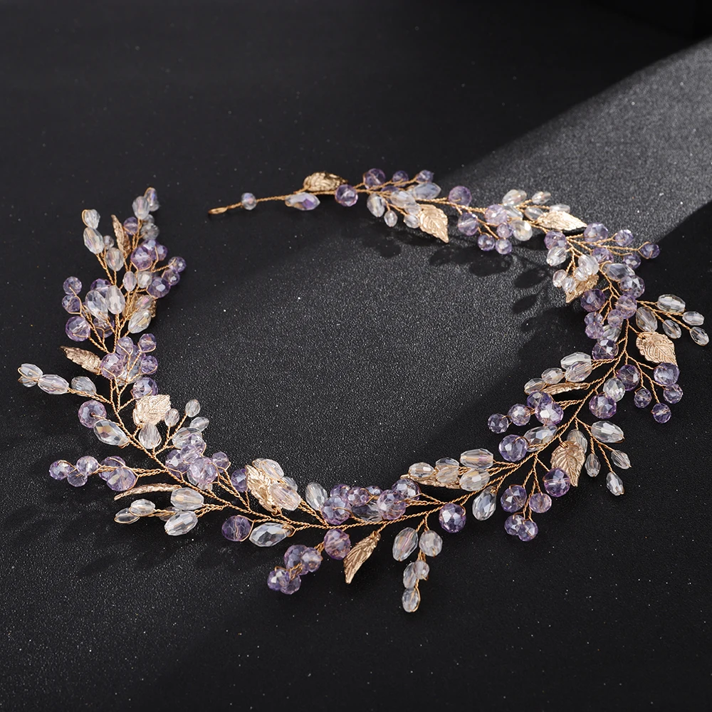 Gold Wedding Headpieces for Bride Handmade Bridal Headband with Leaf Crystal Hair Accessories Hair Vine for Women
