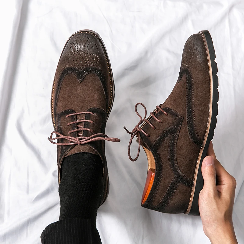 Handmade Mens Wingtip Oxford Shoes Cow Leather Brogue Men’s Dress Shoes Classic Business Formal Shoes for Men Zapatillas Hombre