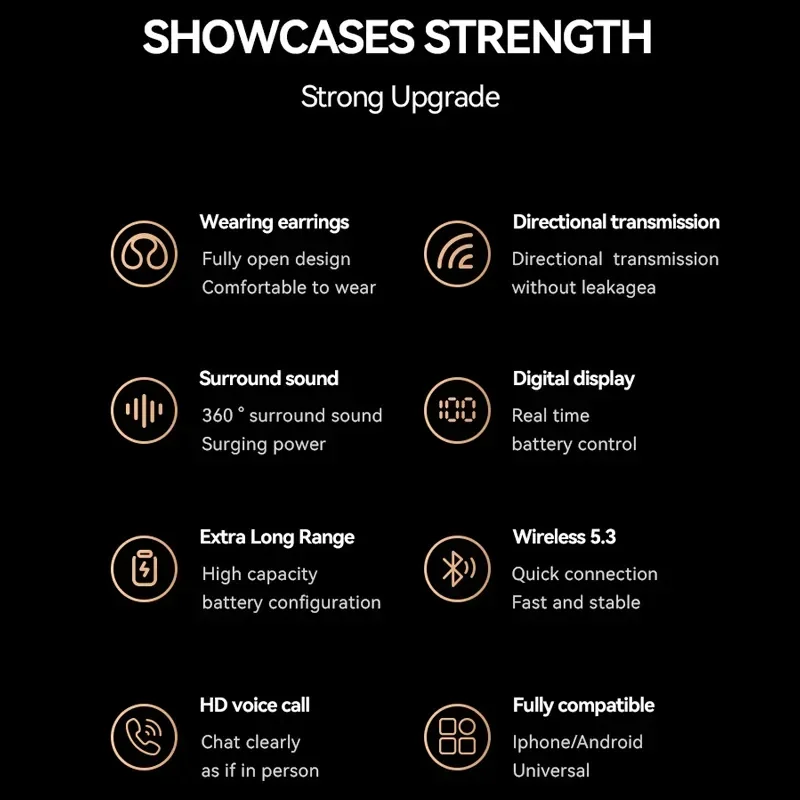 【IPX5 Waterproof】The IPX5 life-level waterproof performance protects the open ear earphones from sweat and rain, and will not be afraid of splashing water in any direction, allowing you to maintain perfect sports performance with the open ear headphones.