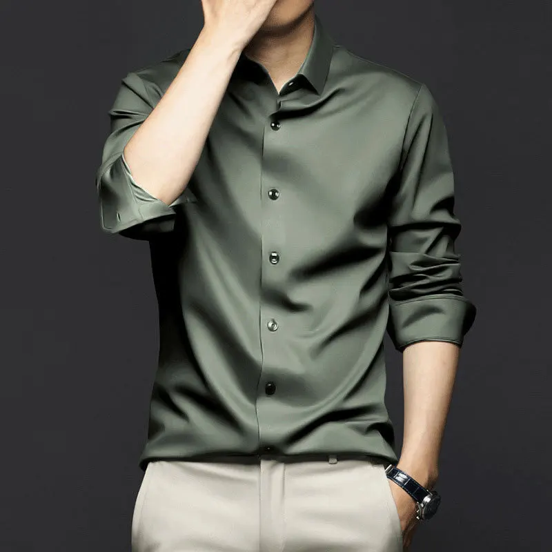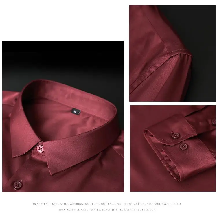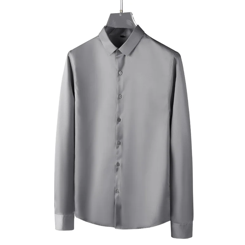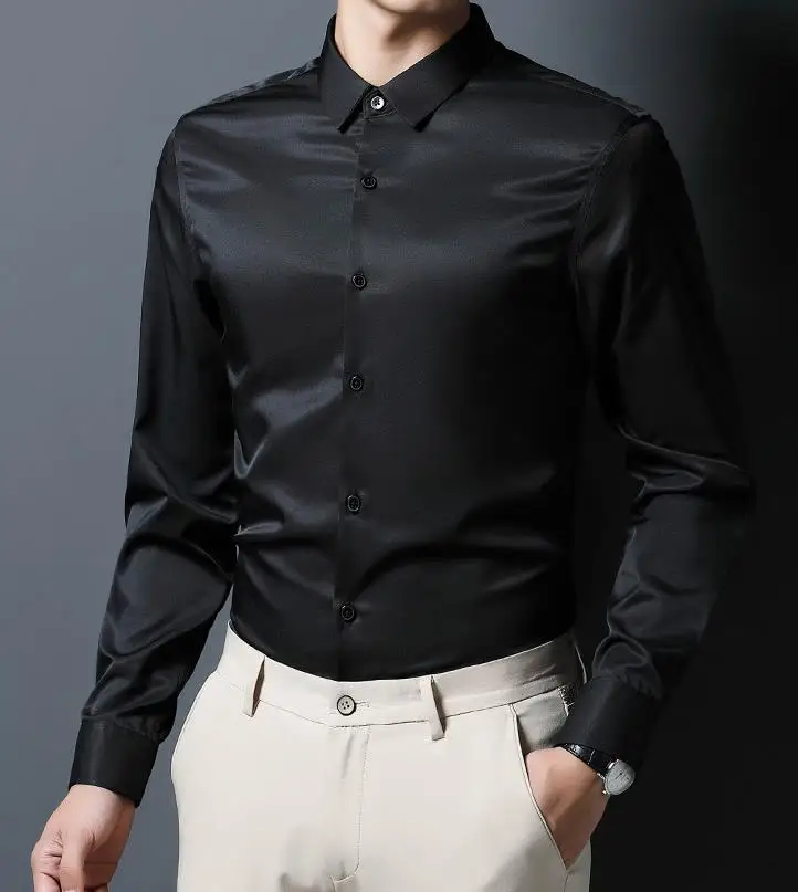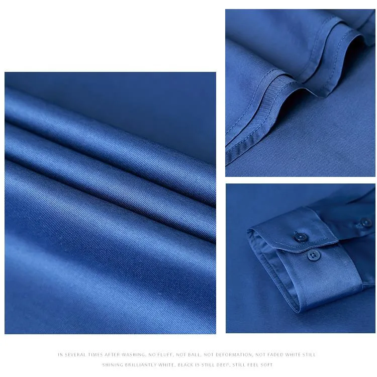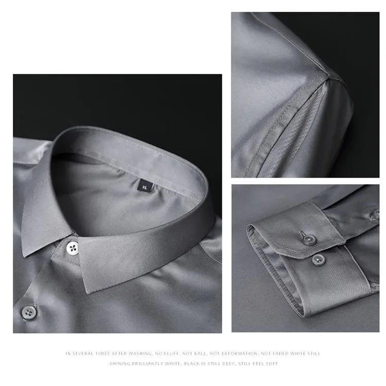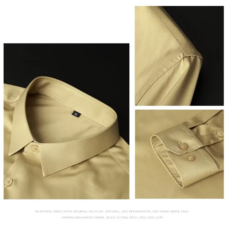 High Quality Men’s Long Sleeve Shirt Luxurious Wrinkle-resistant Non-iron Solid Color Business Casual Ice Silk Poplin Shirts 6XL