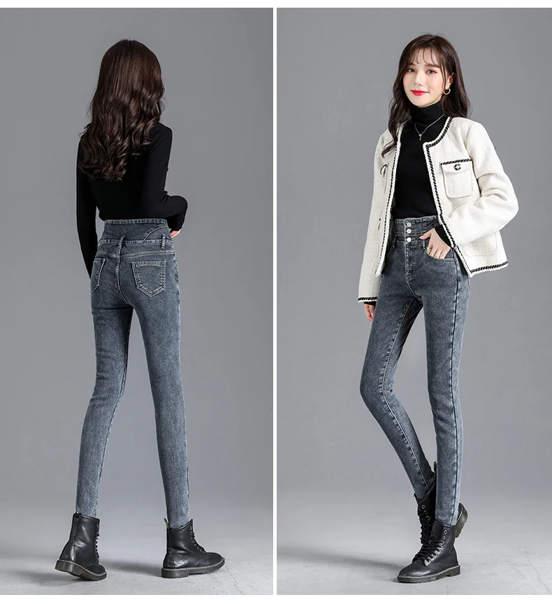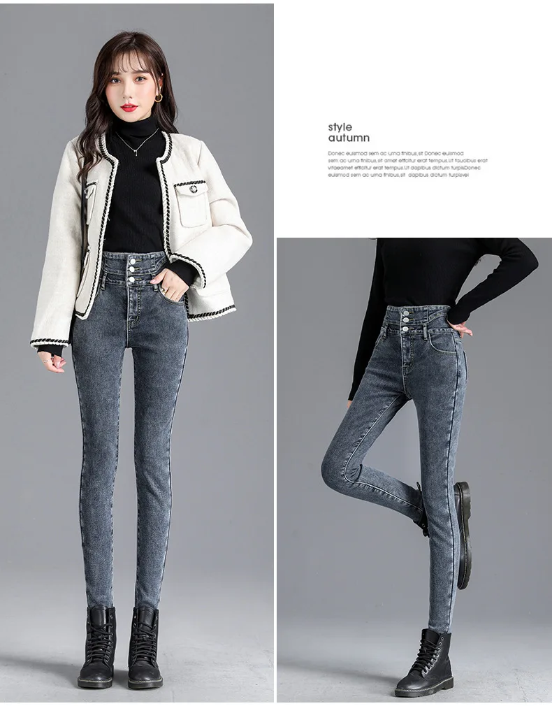 High-quality New Vintage High-waist Stretch Skinny Jeans, Women’s Fashion Stretch Button Pencil Pants, Mom Casual Jeans Pants