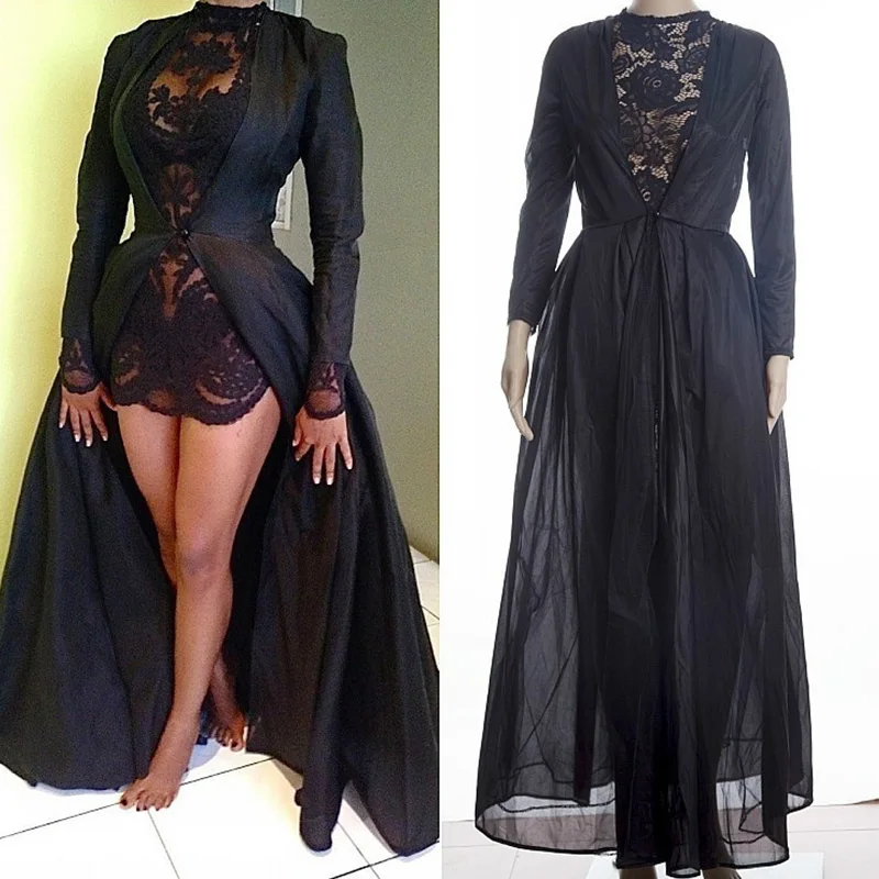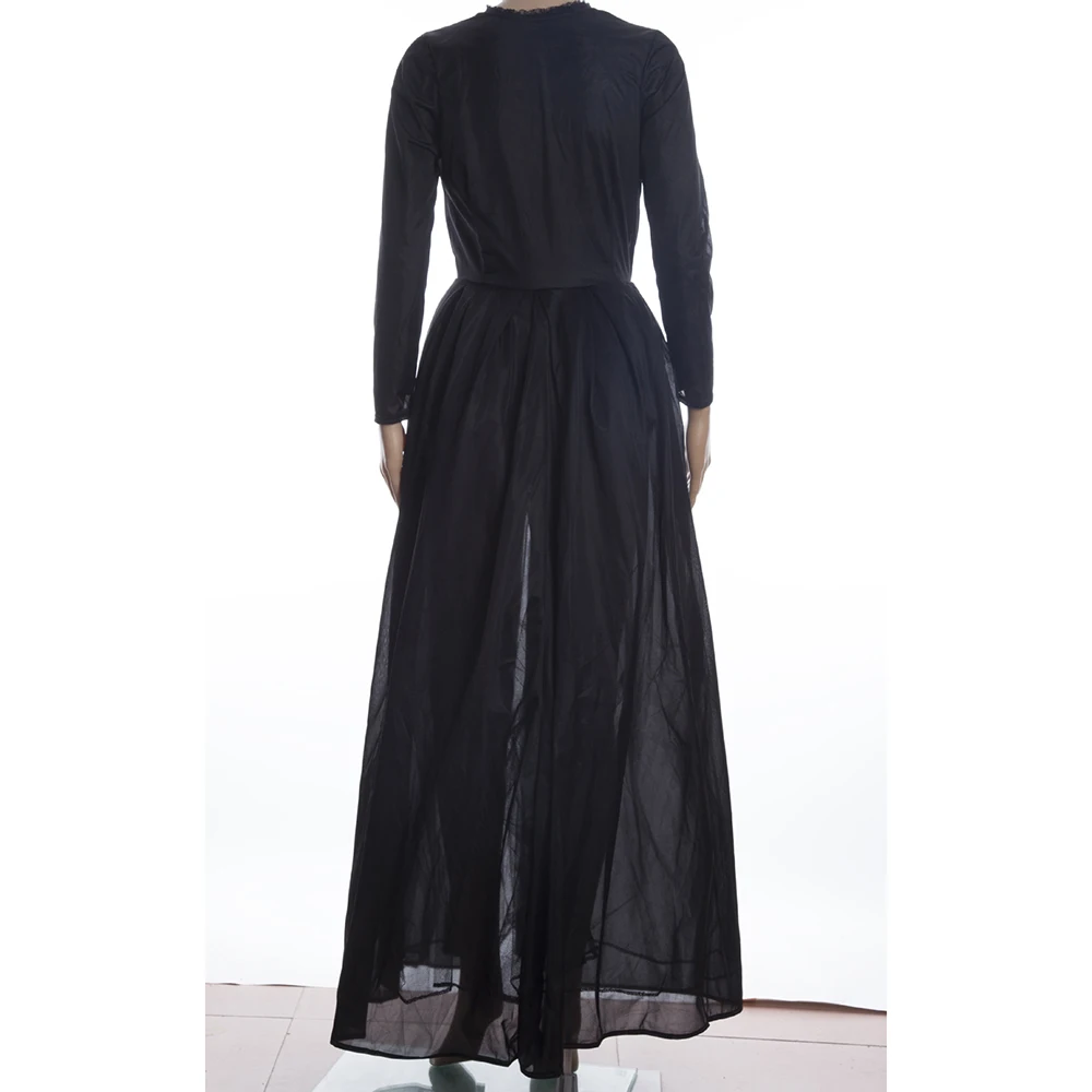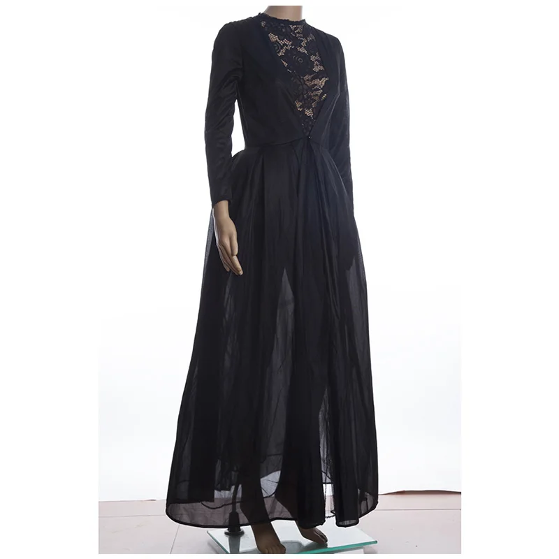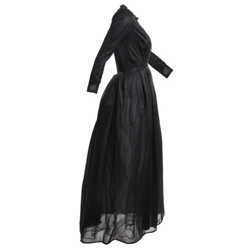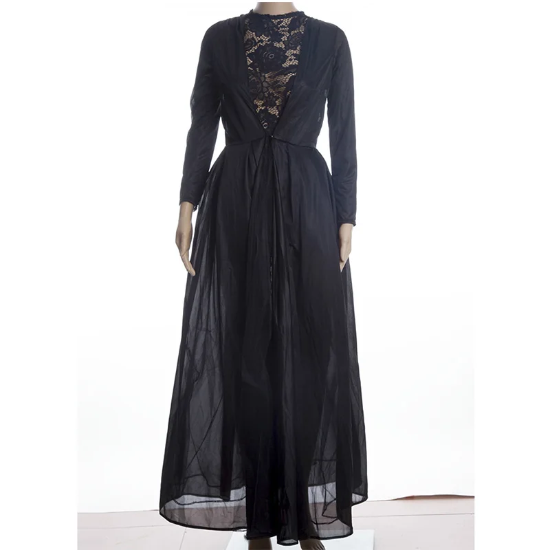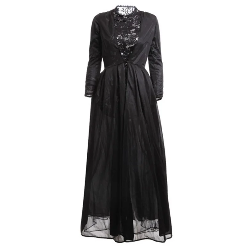 High Quality Sexy Gothic Lace High Waist Sheer Jacket Long Dress Black Gown Party Costume Lady Autumn Dress