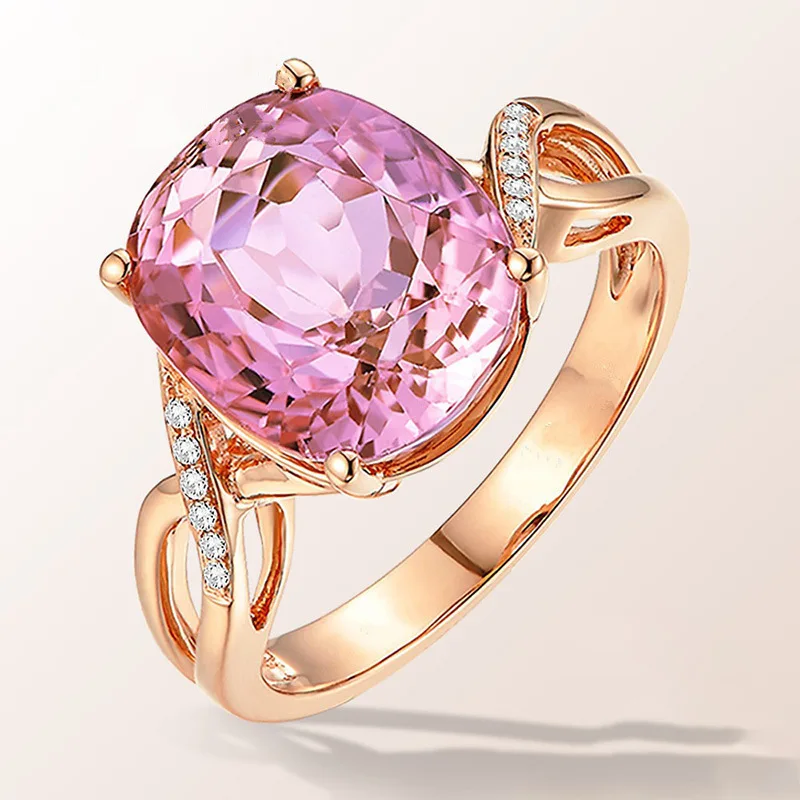 HuiSept Elegant 925 Silver Female Rings Oval Shape Pink Crystal Inlaid Zircon Ring Jewellery Wedding Engagement Gifts Rose Gold Wholesale