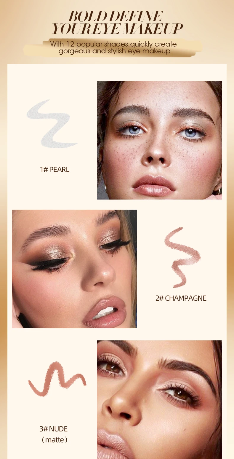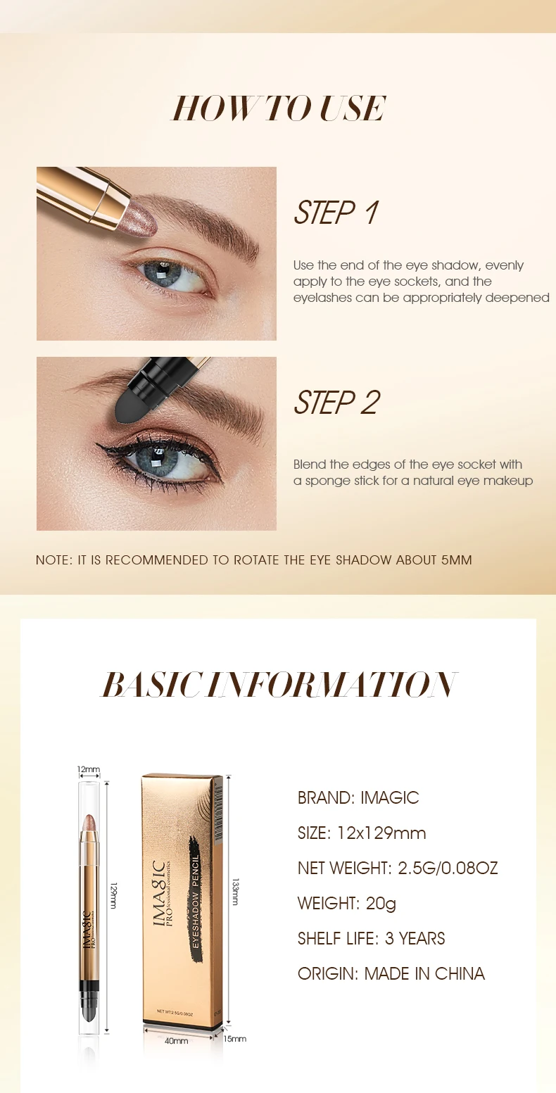 IMAGIC 12-Color Eyeshadow Pencil Glitter Matte Highlighter Silkworm Blush Brighten Eye Makeup Natural Pigment Long Wear Cosmetic