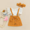 Infant Girls Summer Outfit Sets White Flying Sleeve Ribbed Romper + Solid Color Suspender Skirt + Headband