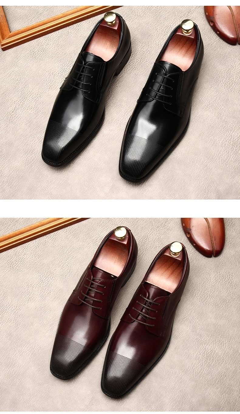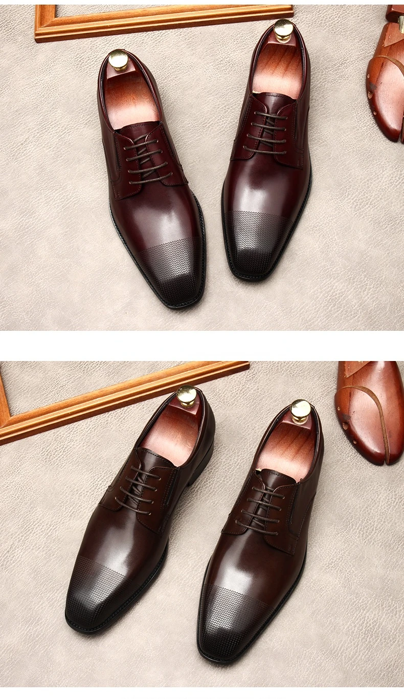Italian Mens Dress Shoes Luxury Genuine Leather Summer 2023 New Style Fashion Square Toe Black Business Social Oxfords Shoes