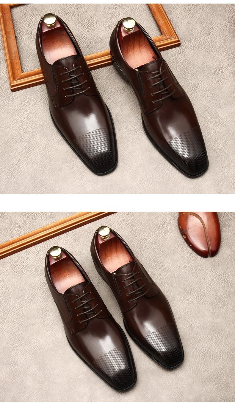 Italian Mens Dress Shoes Luxury Genuine Leather Summer 2023 New Style Fashion Square Toe Black Business Social Oxfords Shoes