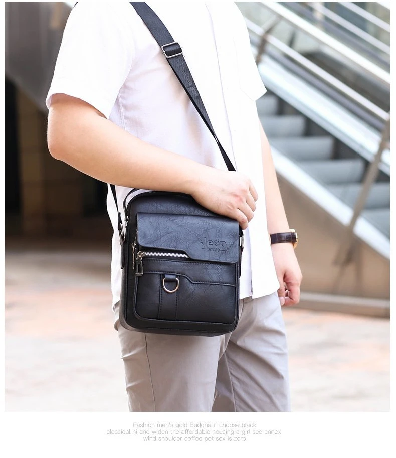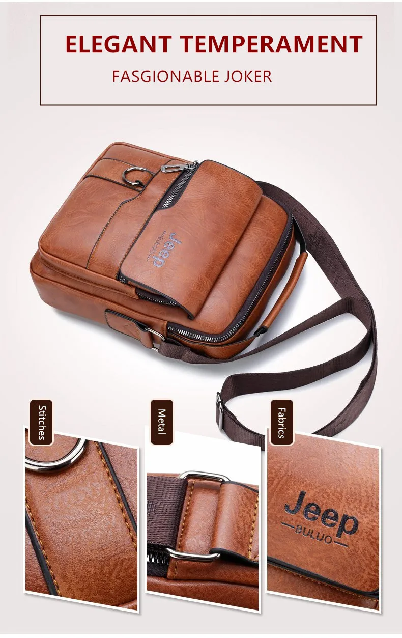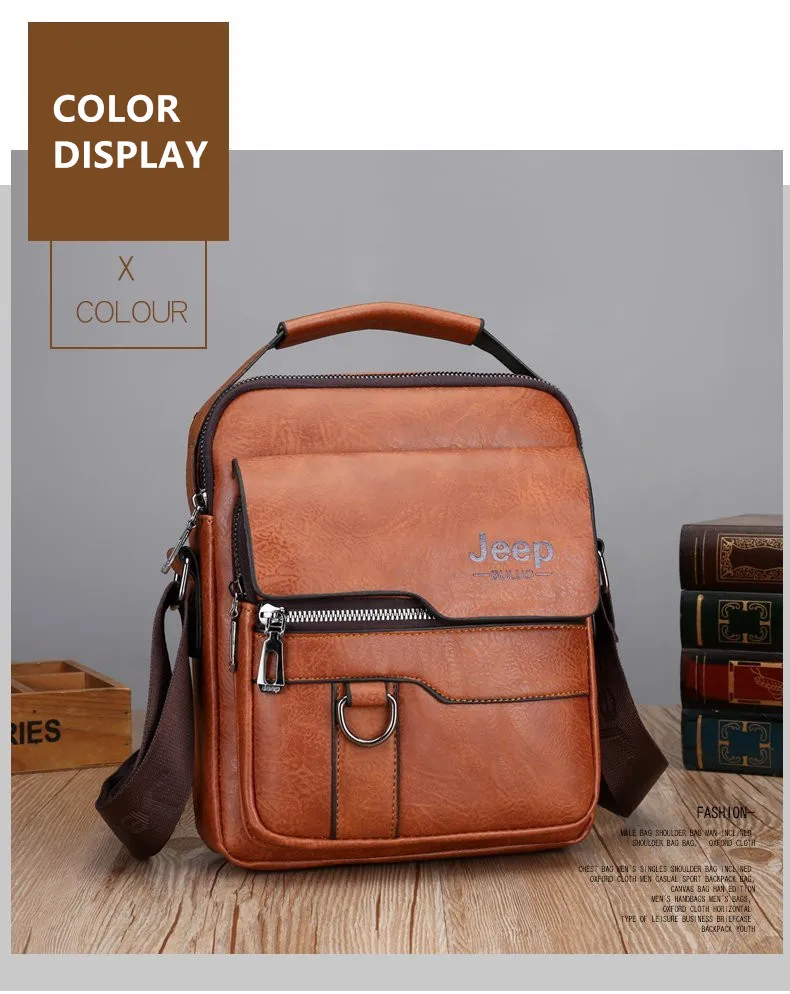 JEEP BULUO Crossbody Messenger Bags Business Casual Handbag Brand Shoulder New High Quality Leather For Men Business Casual Fash