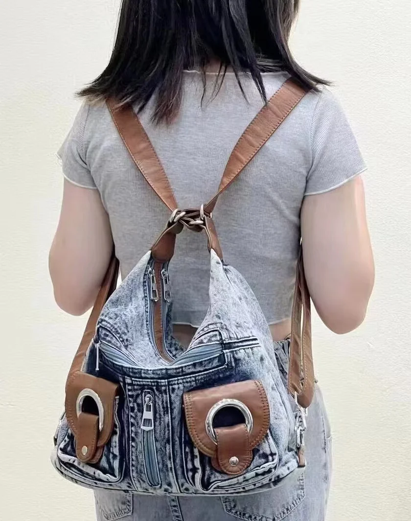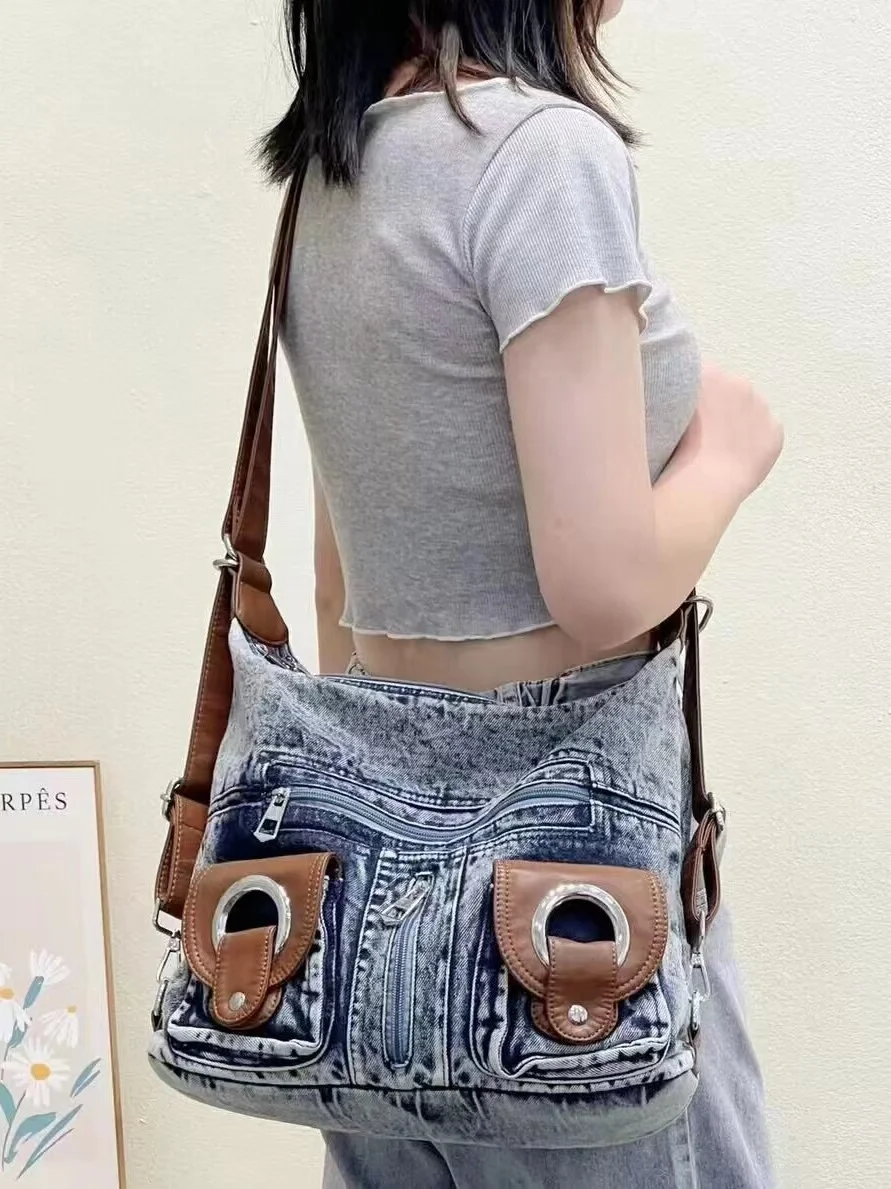 JIAERDI Punk Denim Y2k Bag Women 2023 High Street Pockets Chic Vintage Backpack Ladies Harajuku Casual Messenger Bags Versatile