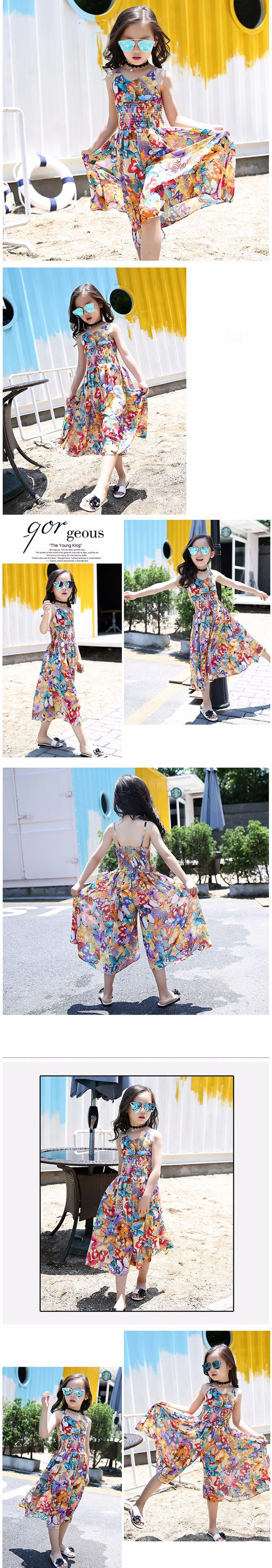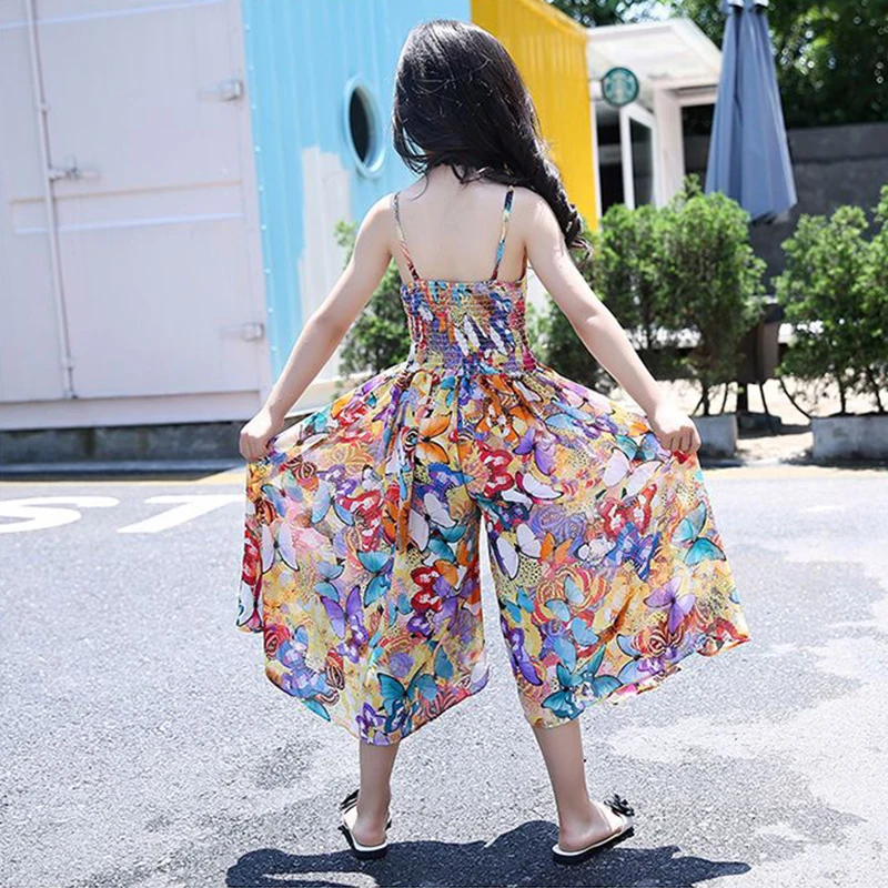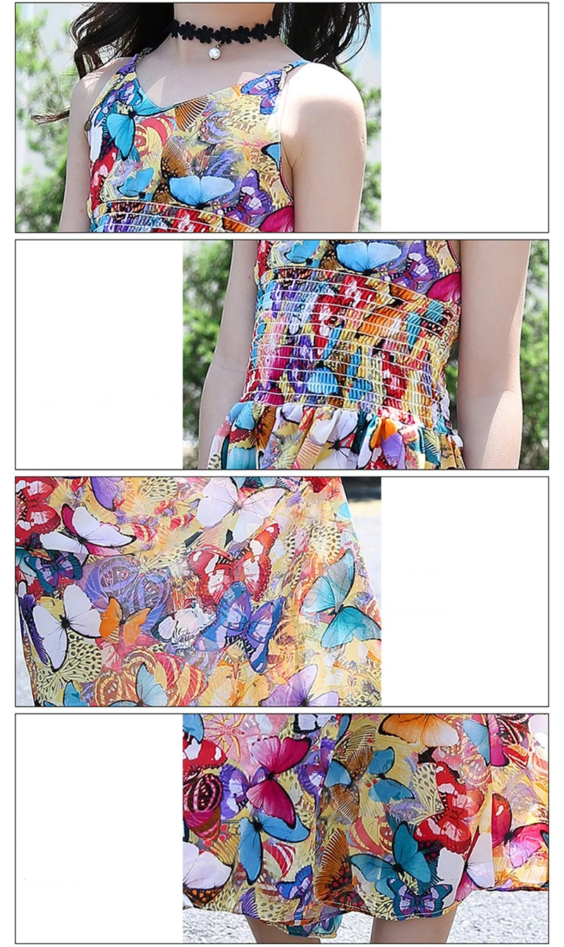 Kids Summer Bohemia Dress For Girls Children Floral Butterfly Chiffon Sling Dresses Birthday Party Princess Clothing 4 6 8 10 12