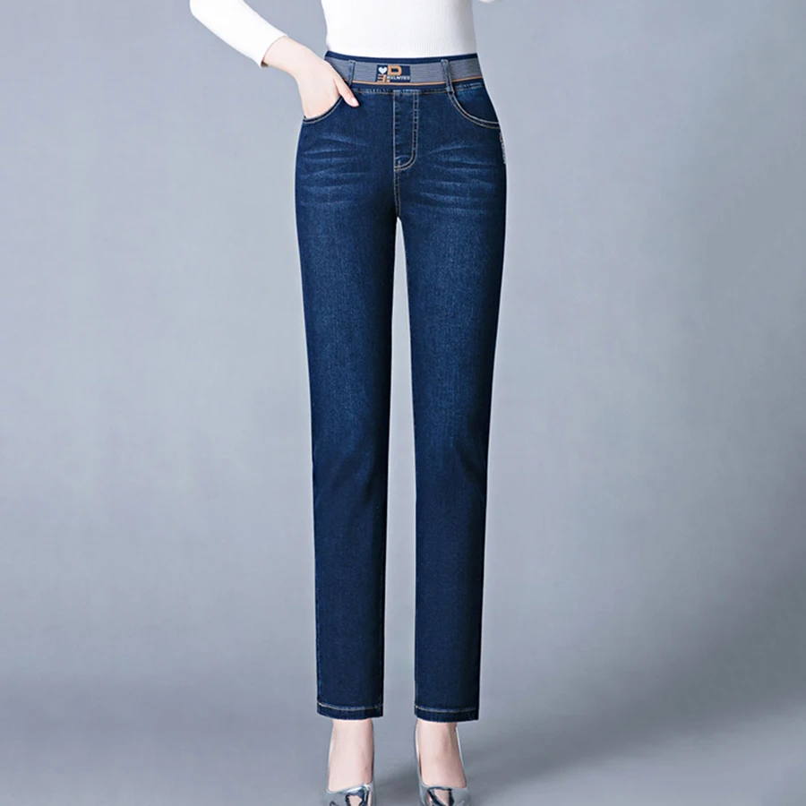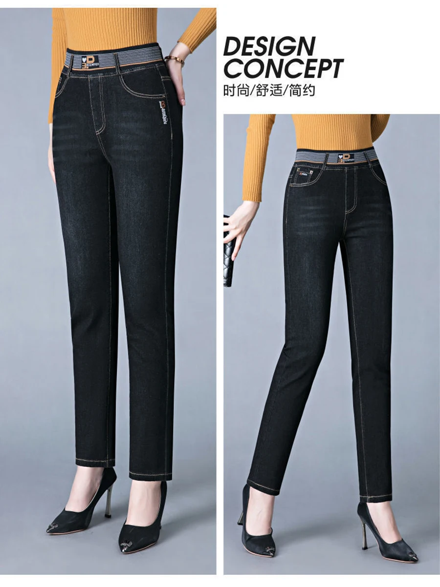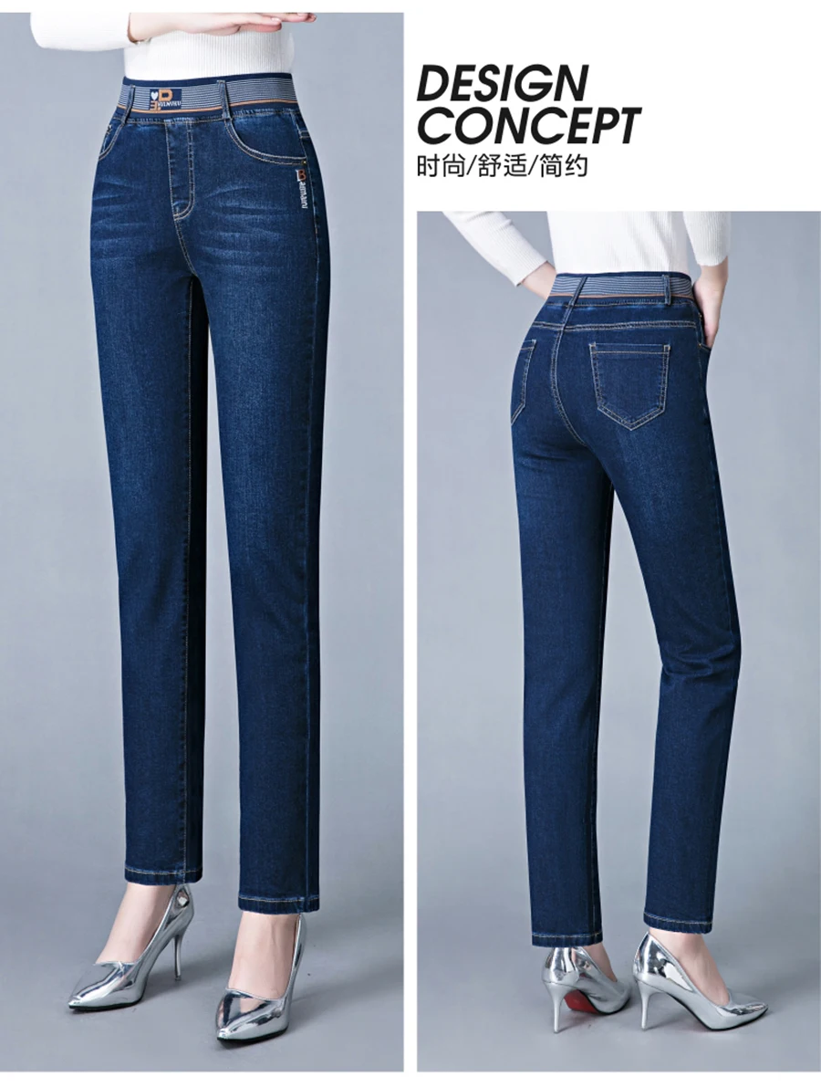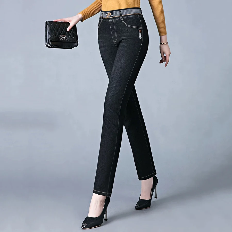 Korean Big Size 36 Straight Jeans Women Casaul Vintage Denim Pants Retro Trousers High Waist Vaqueros Stretch Kot Pantalones