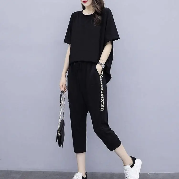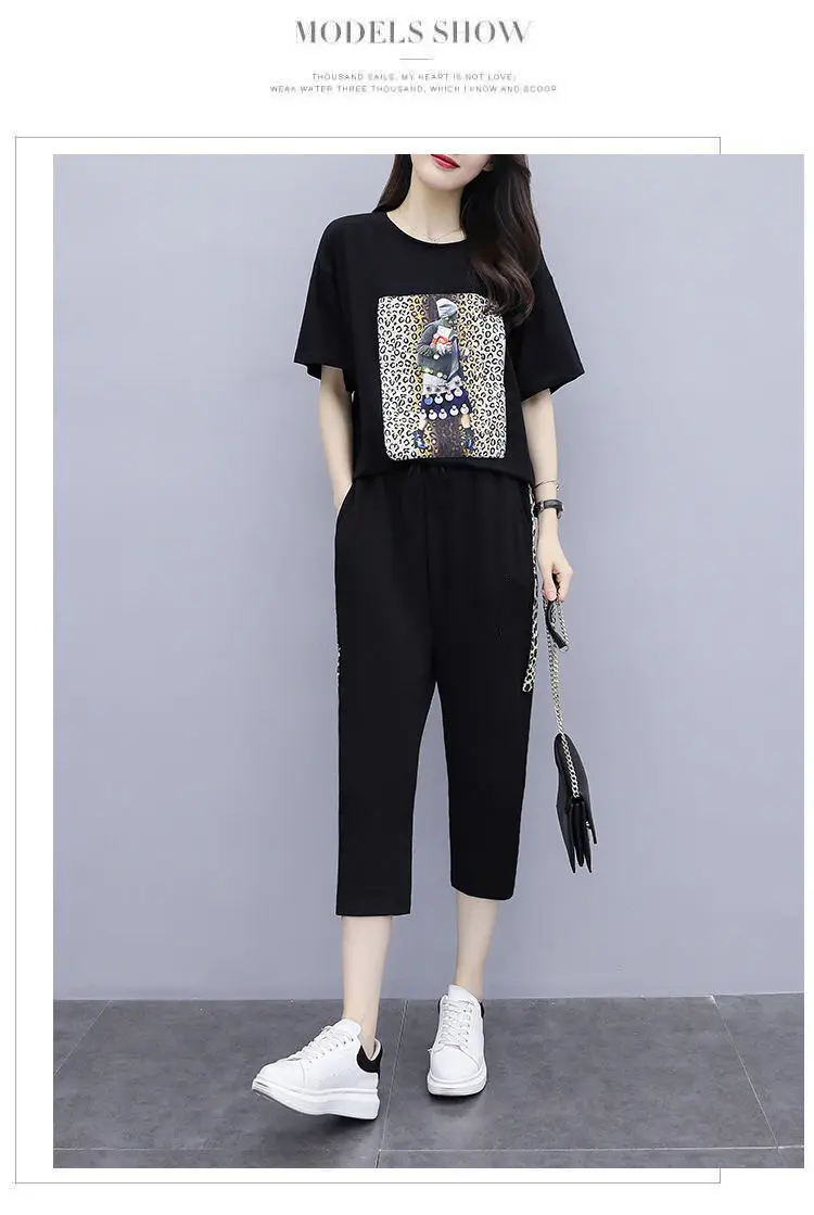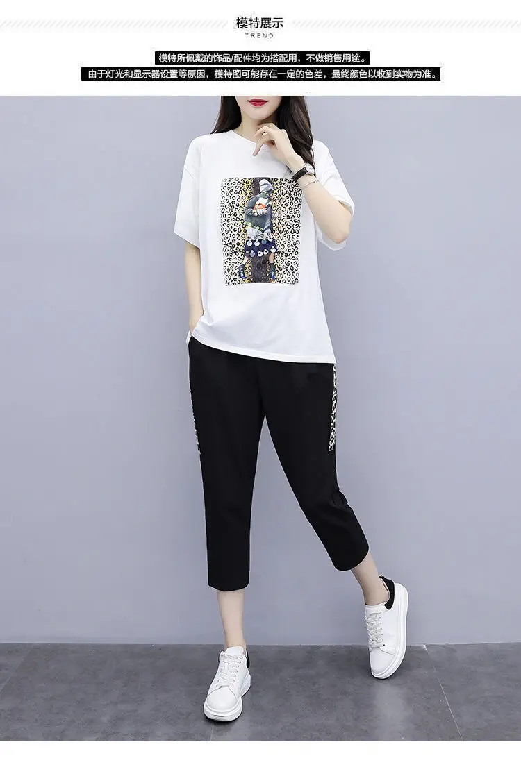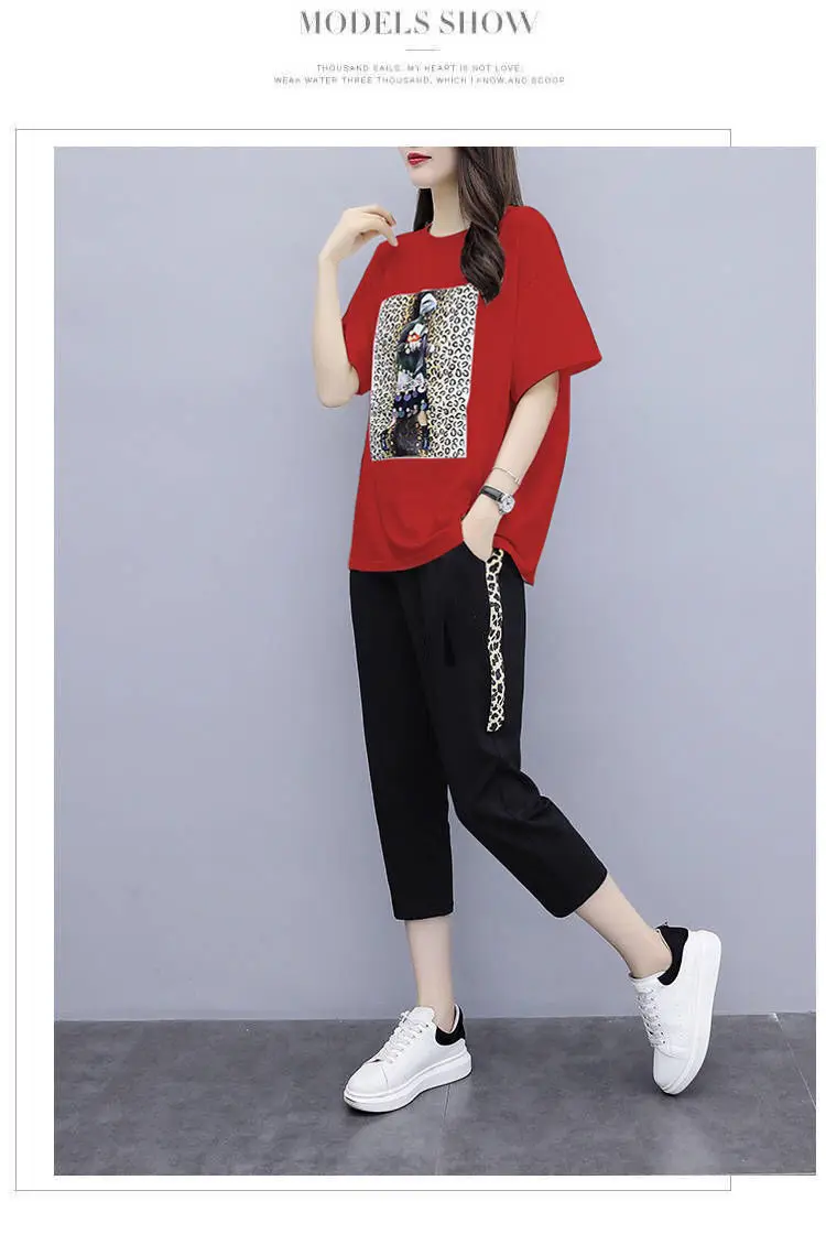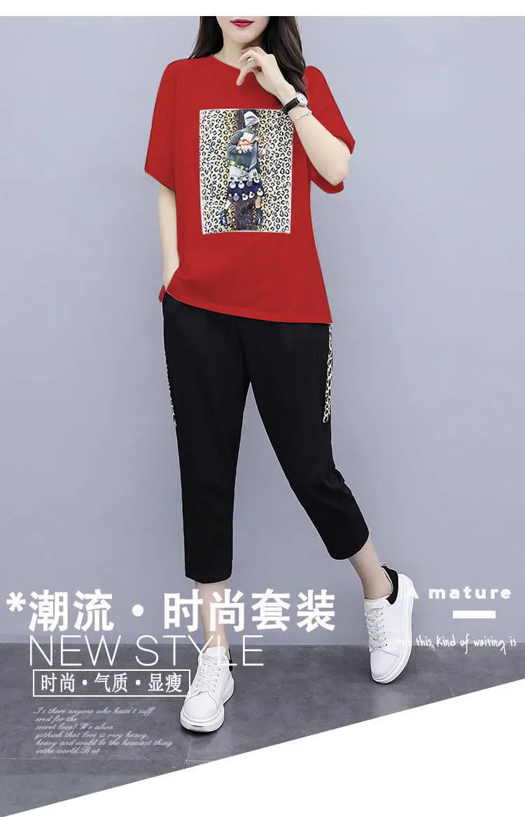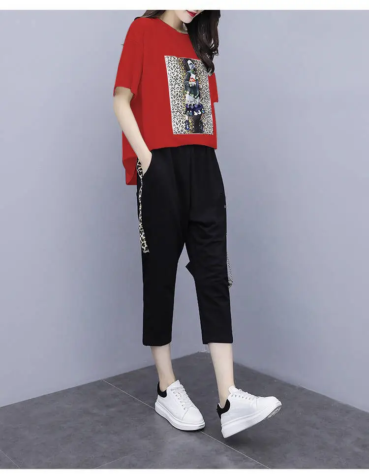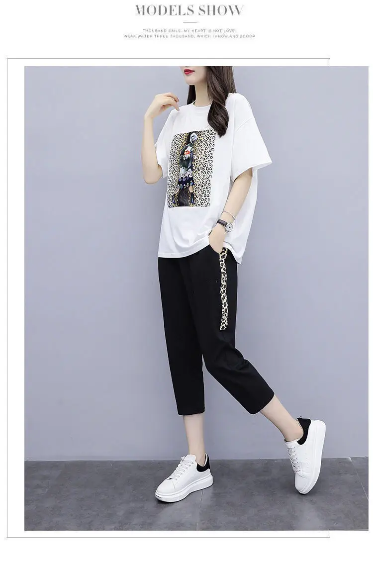 Korean Shorts Set Women O Neck T Shirt Tops And Pants Suits Outfits Fashion High Street Casual Tracksuit 2 Piece Set Summer 5XL
