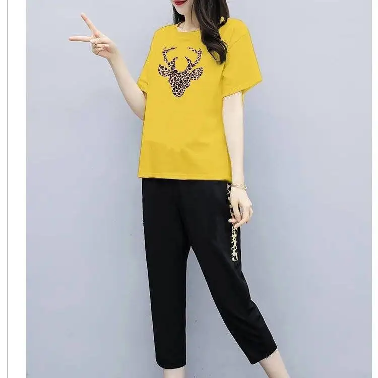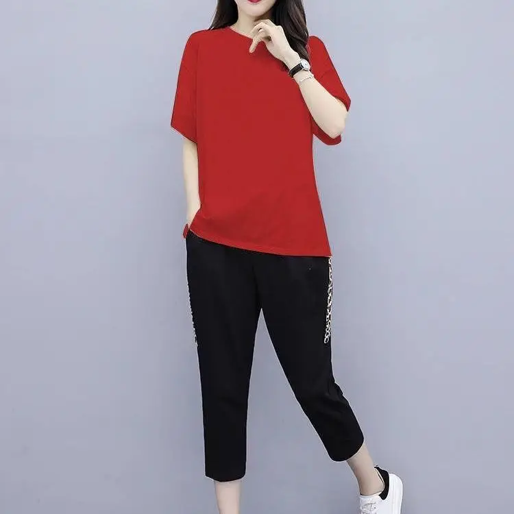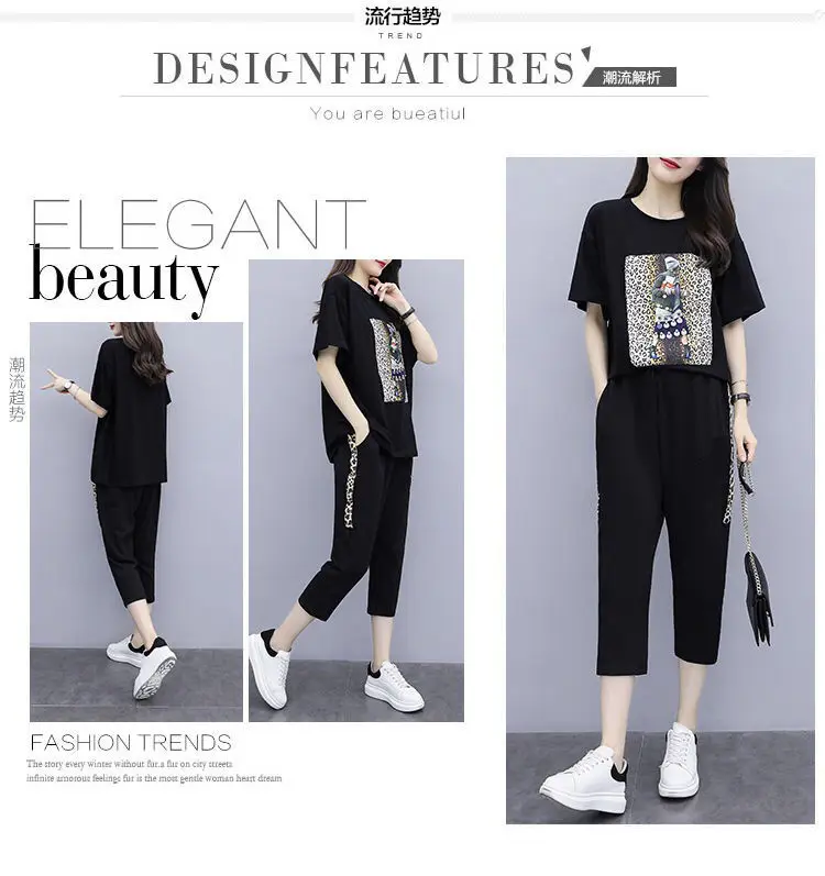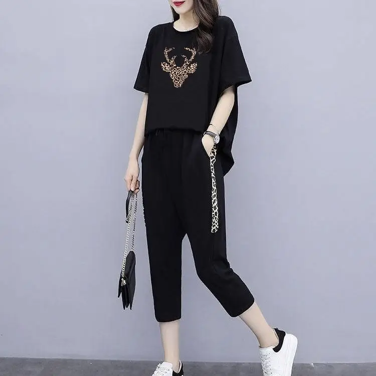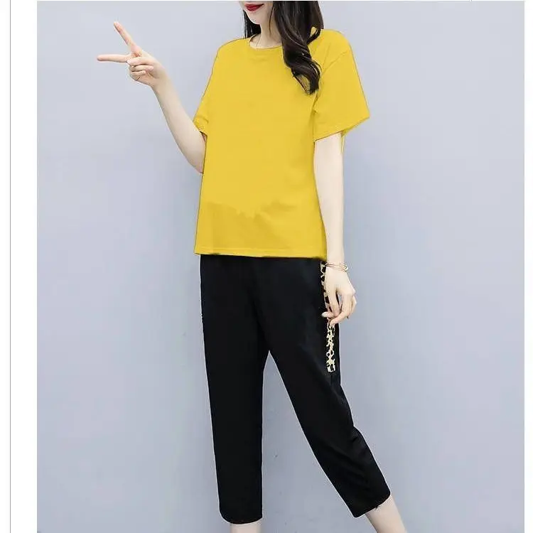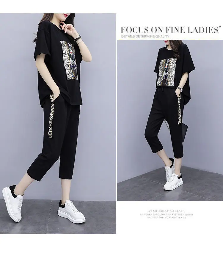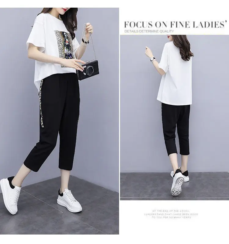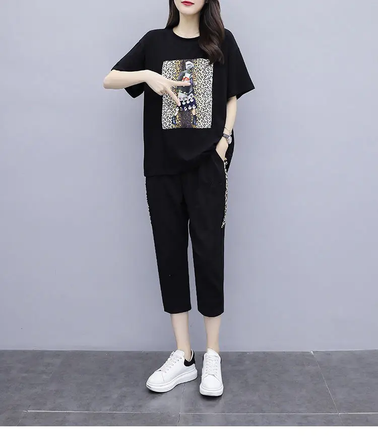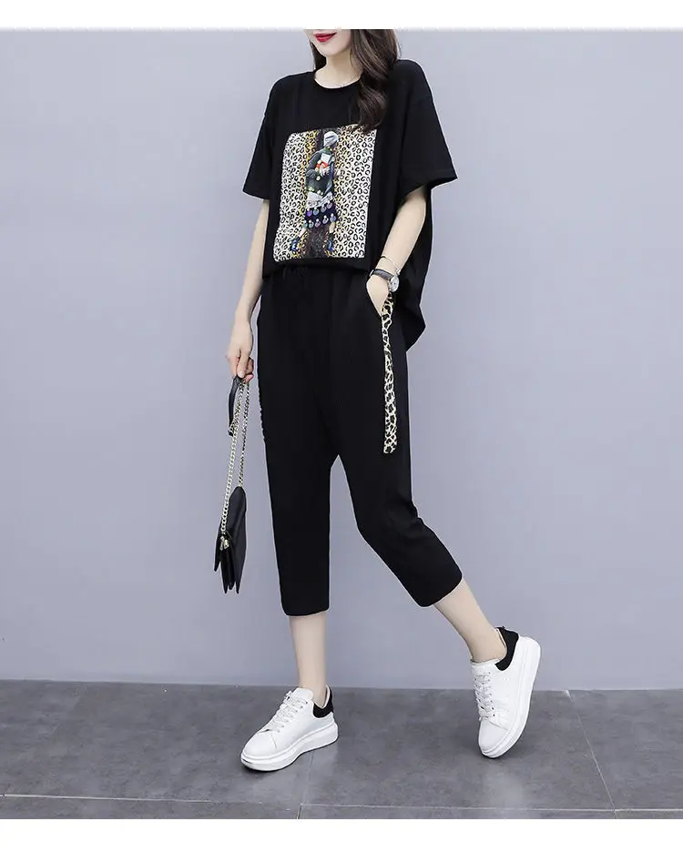 Korean Shorts Set Women O Neck T Shirt Tops And Pants Suits Outfits Fashion High Street Casual Tracksuit 2 Piece Set Summer 5XL
