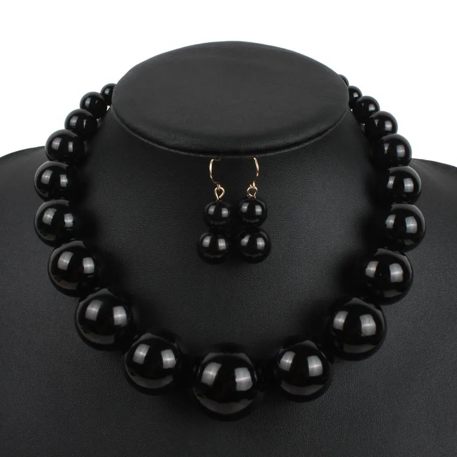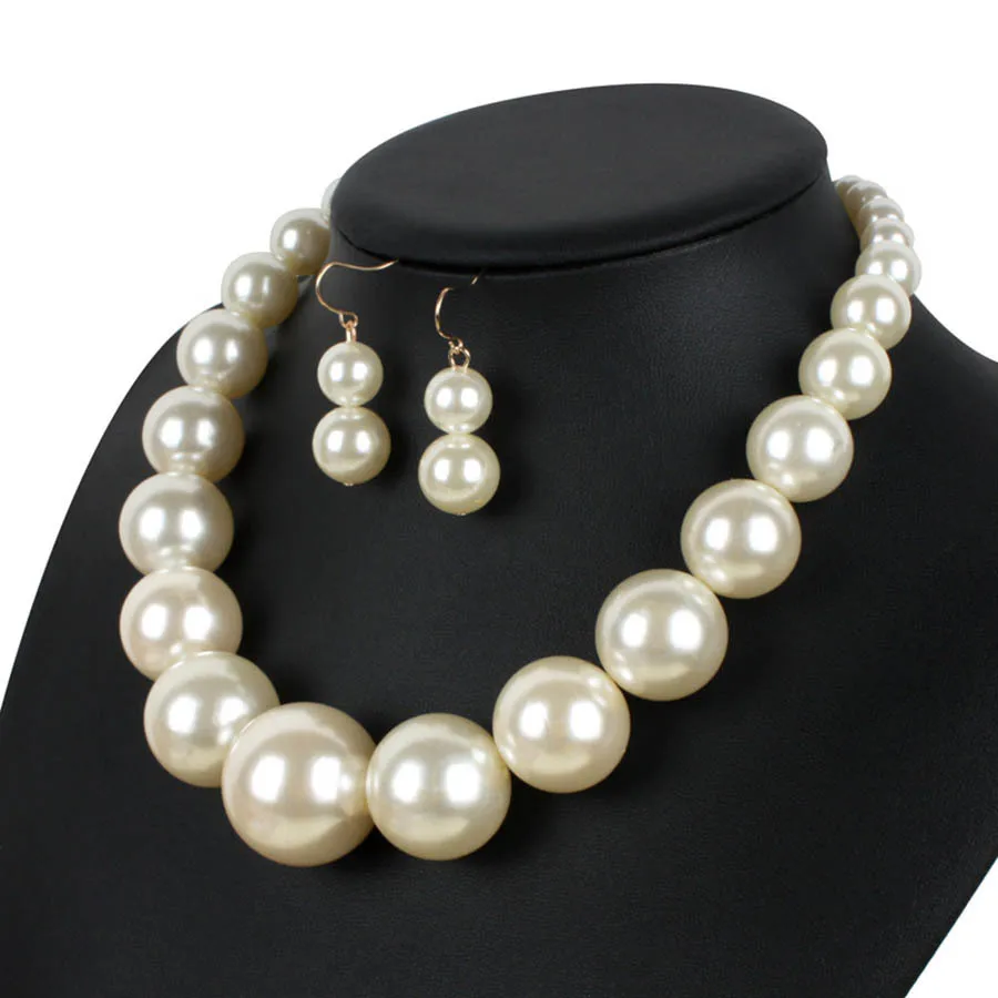 Korean style Imitation red Pearl Pendant Short Necklace For Women Charm Simple Metal Chain Choker Bracelet Fashion Set Jewelry