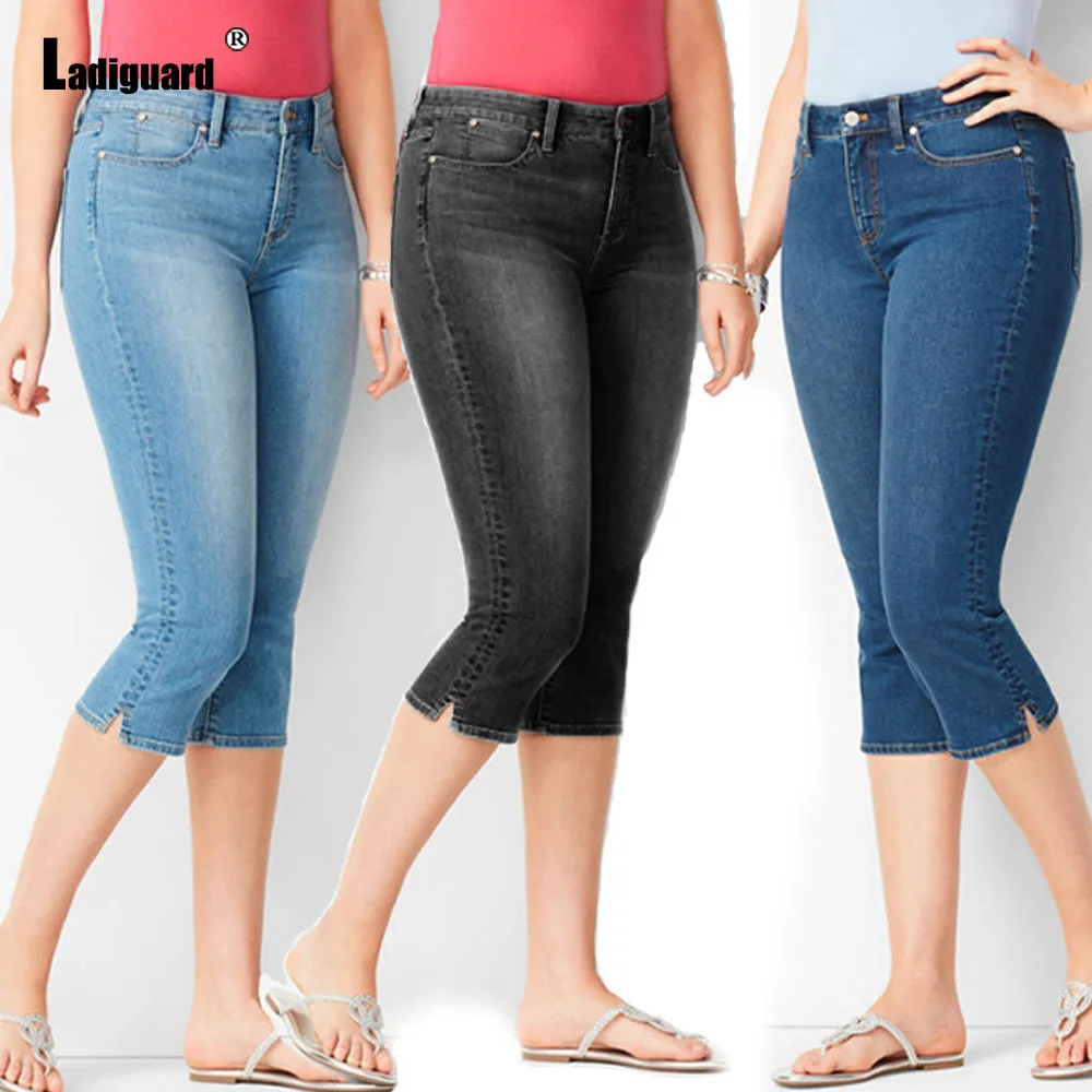 Ladies Vintage Cuff Split Demin Pants Stand Pocket Jeans Women High Cut Skinny Trousers 2023 European Fashion Calf-Length Pants