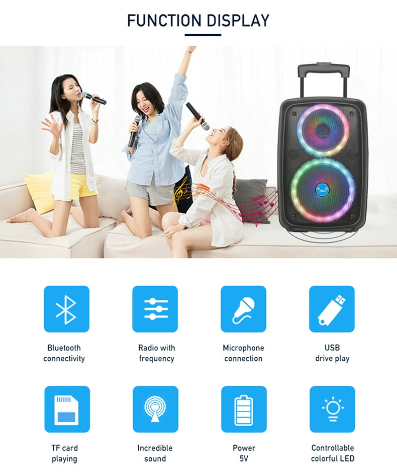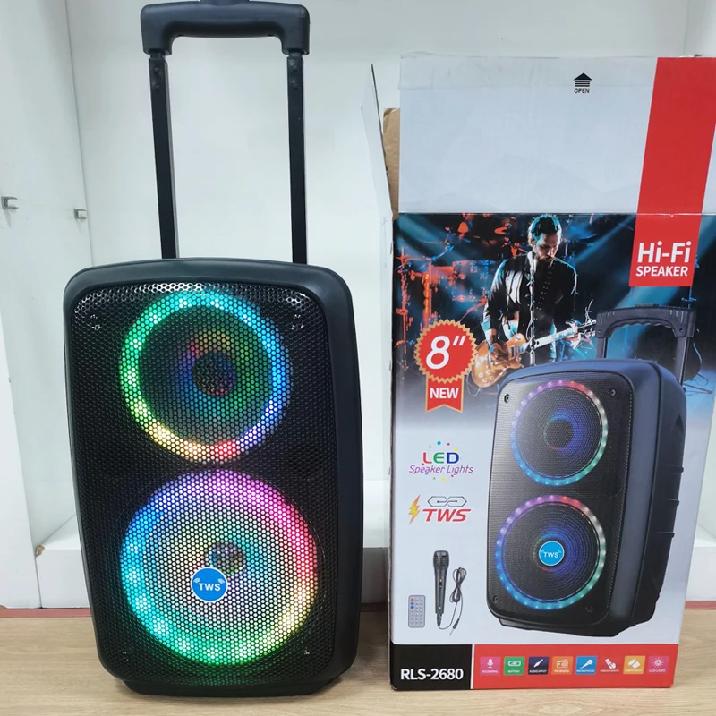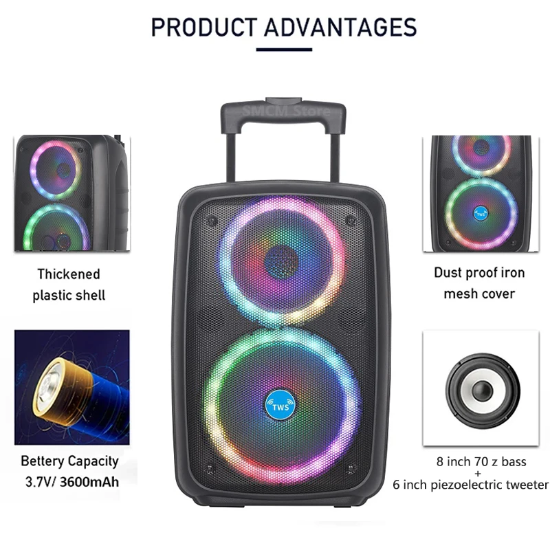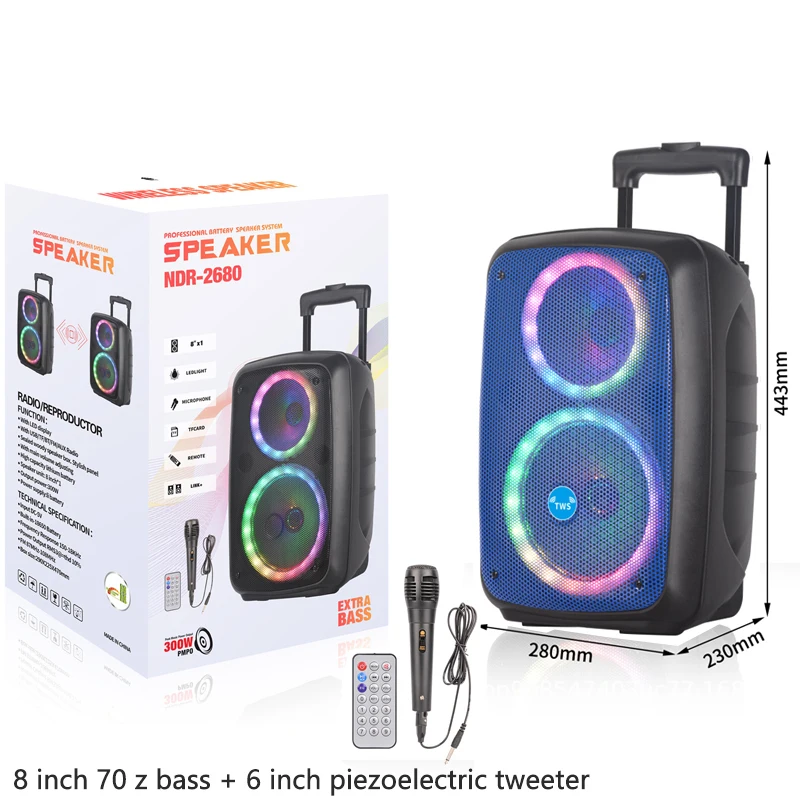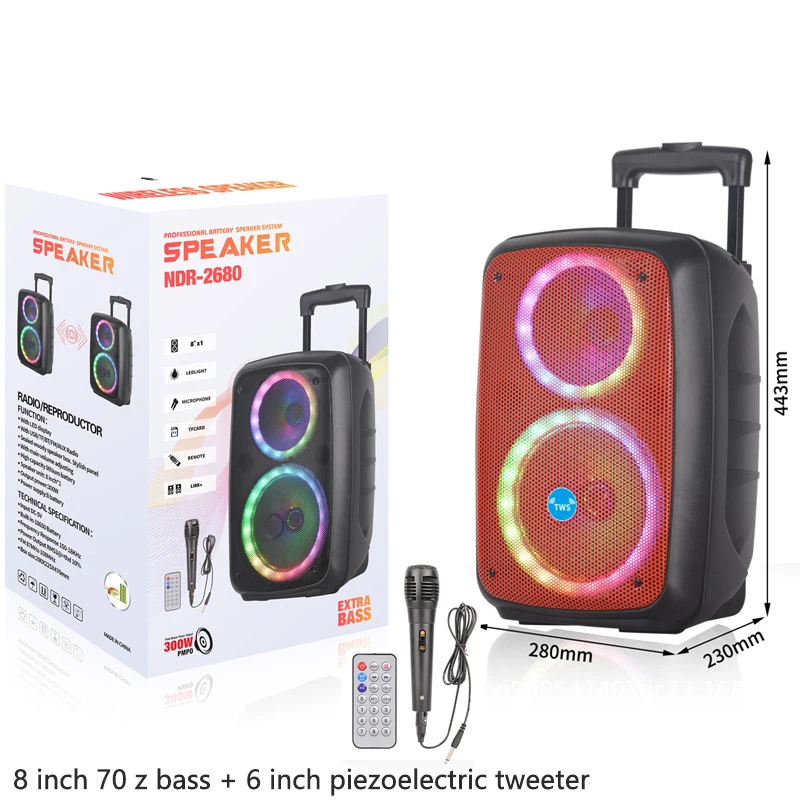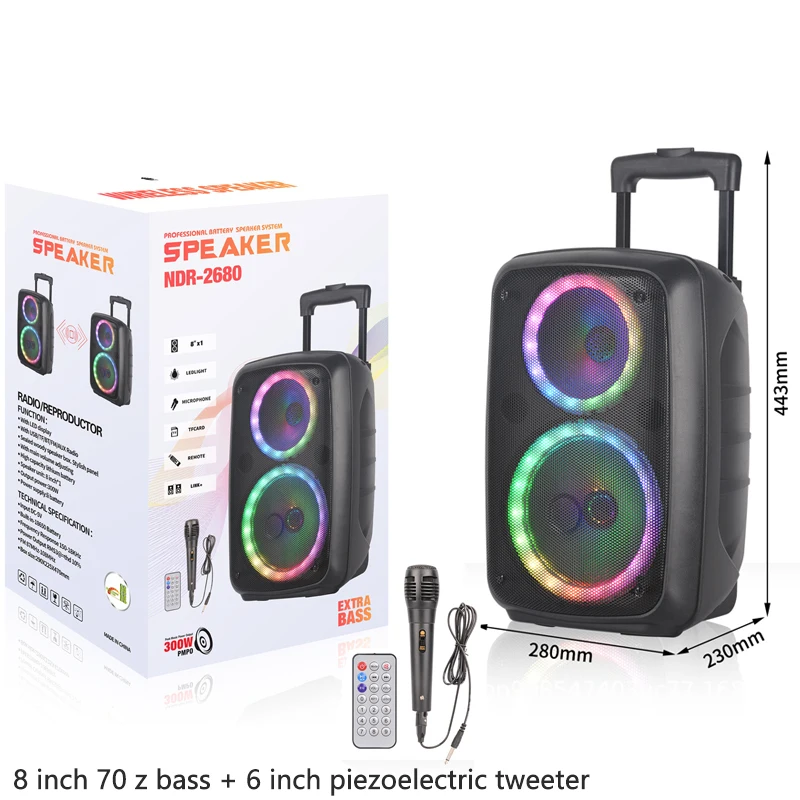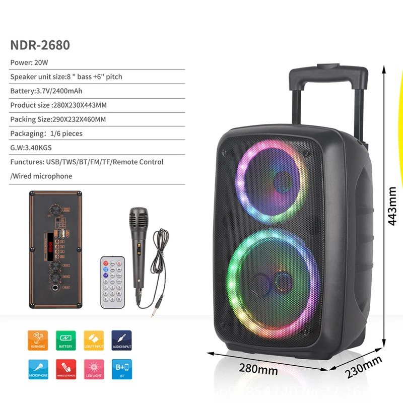 LED Trolley Box Party Speaker 2000W Peak Power 8 Inch Outdoor Portable FM Radio Bluetooth Speakers With Wired Mic Caixa De Som