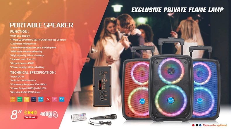 QS-6802 8” wireless speaker quality sound subwoofer with LED light