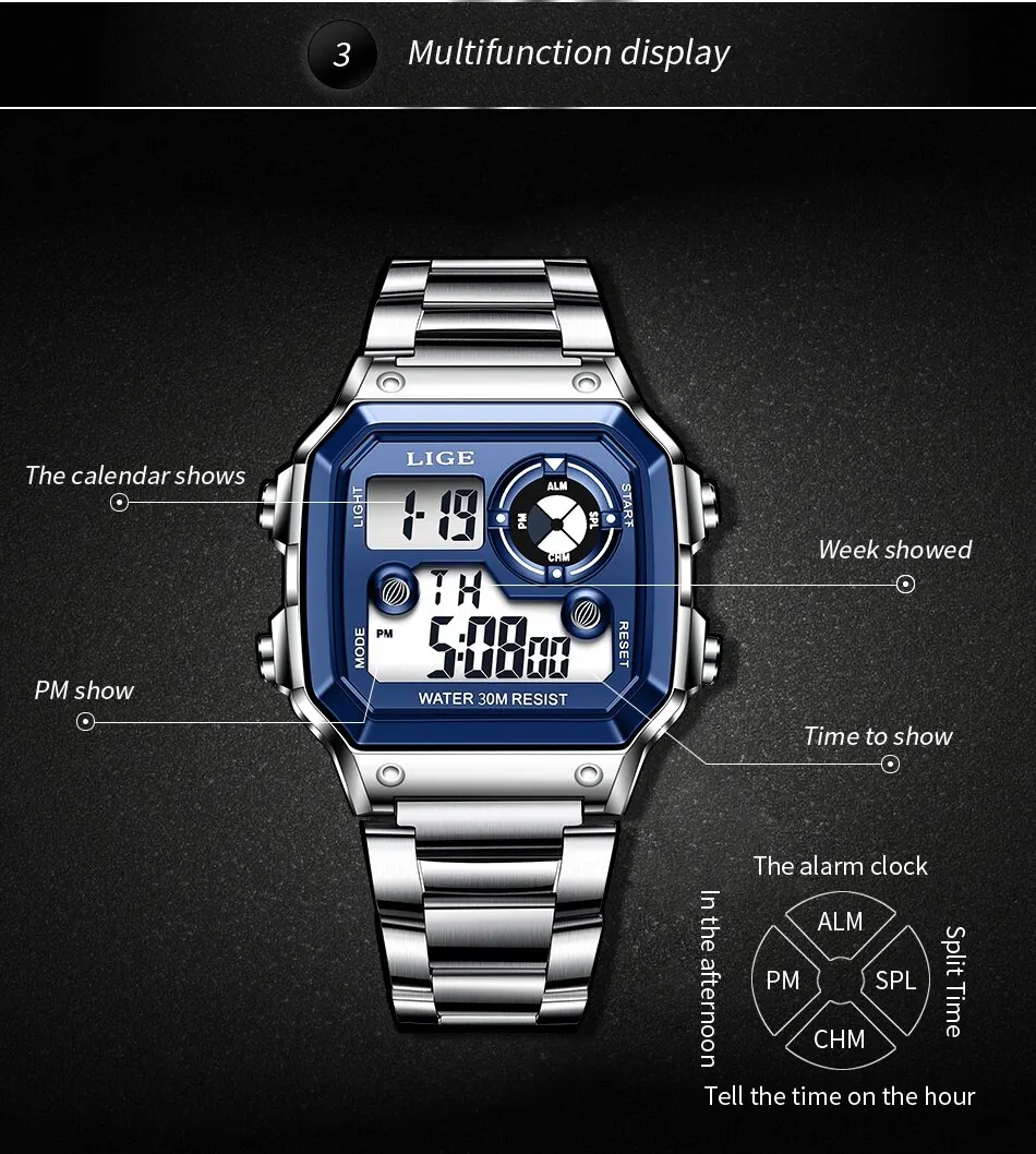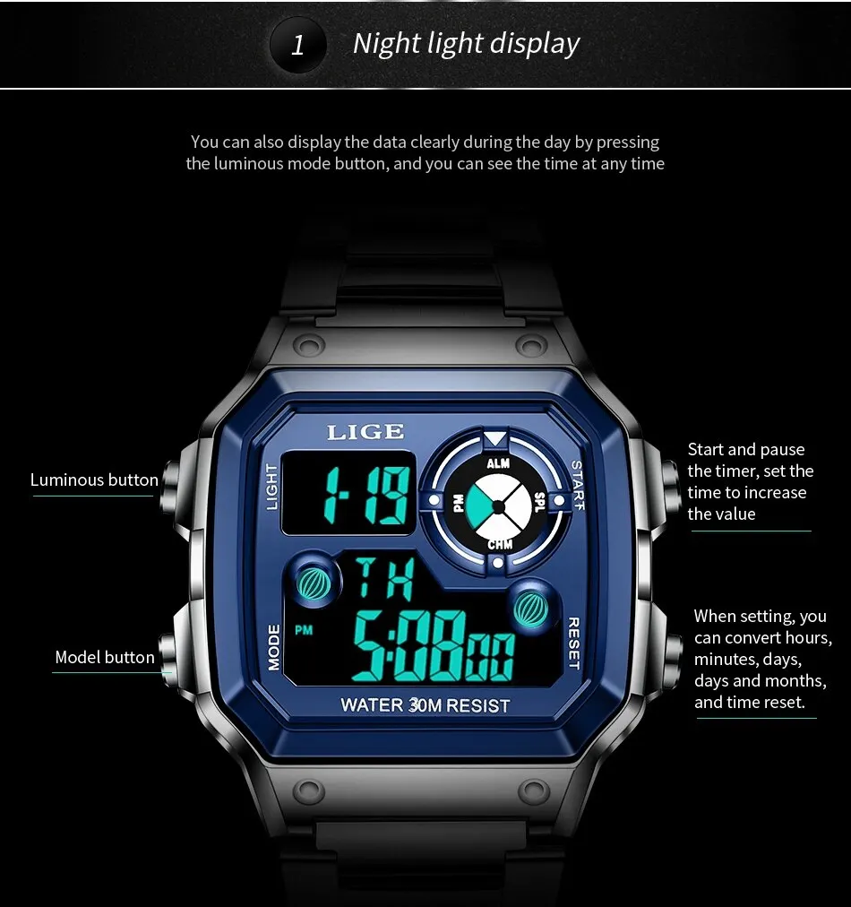 Lige 2023 new luxury brand men watch military Digital watches sport wristwatch Mens Waterproof clock male Relogio Masculino