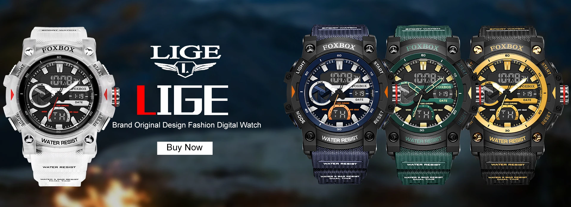 LIGE Luxury LCD Display Men Wristwatches Luminous Sport Man Watch Waterproof Military Quartz Male Clock Relogio Masculino 2023