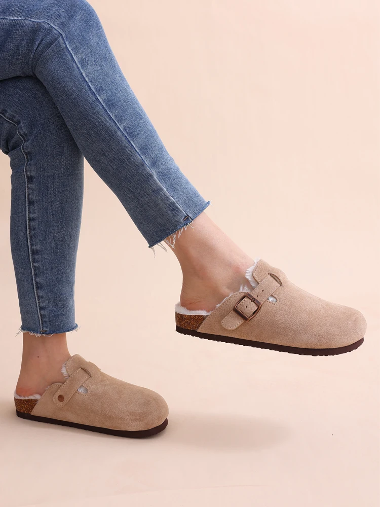 Litfun New Classic Fur Clogs For Women Cozy Winter Warm Short Plush Cozy Home Fuzzy Slippers Suede Mules Cork With Arch Support