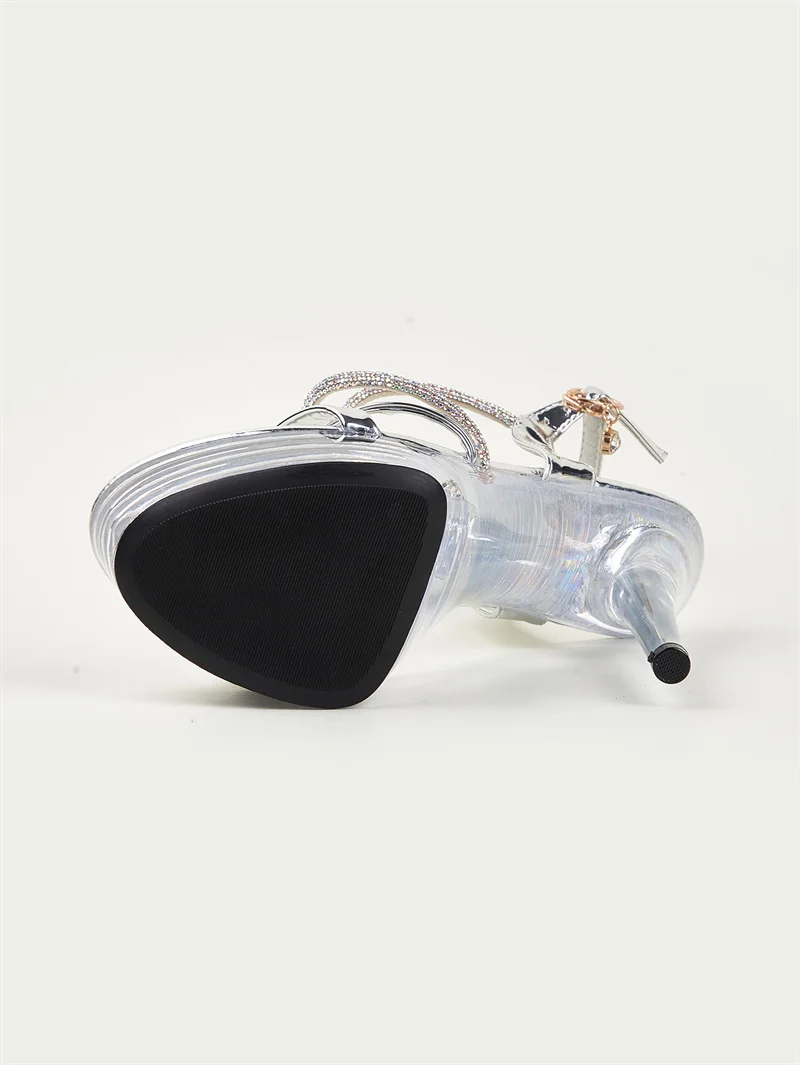 Liyke Fashion Buckle Strap Platform Sandals Women Silver Crystal Rhinestone High Heels Sexy Sequined Thick Bottom Ladies Shoes