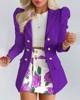 Long Sleeve Suit Jacket Dress Set Spring Fashion Elegant Solid Turn Down Collar Coat Buns Two Piece Sets For Women Outfit 2023