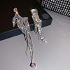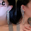 Luxury Asymmetric Shiny Rhinestone Long Tassel Drop Earrings Oversize Crystal Clip Earring Wedding Jewelry Valentine's Day Gift