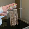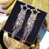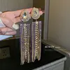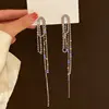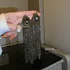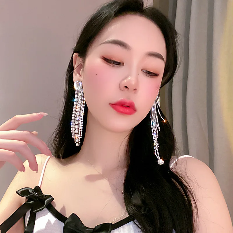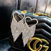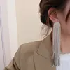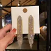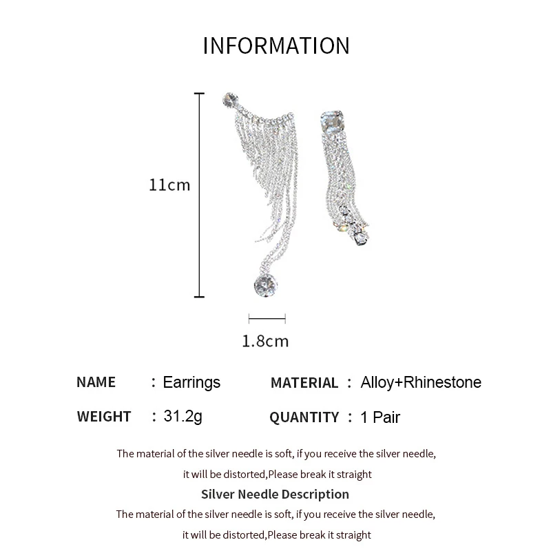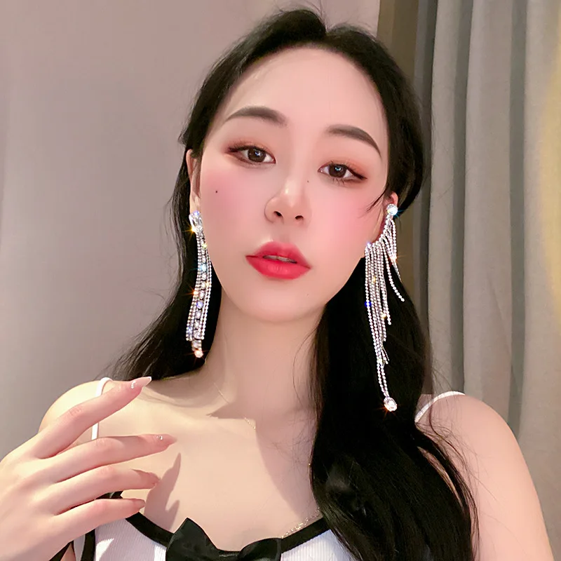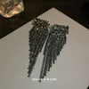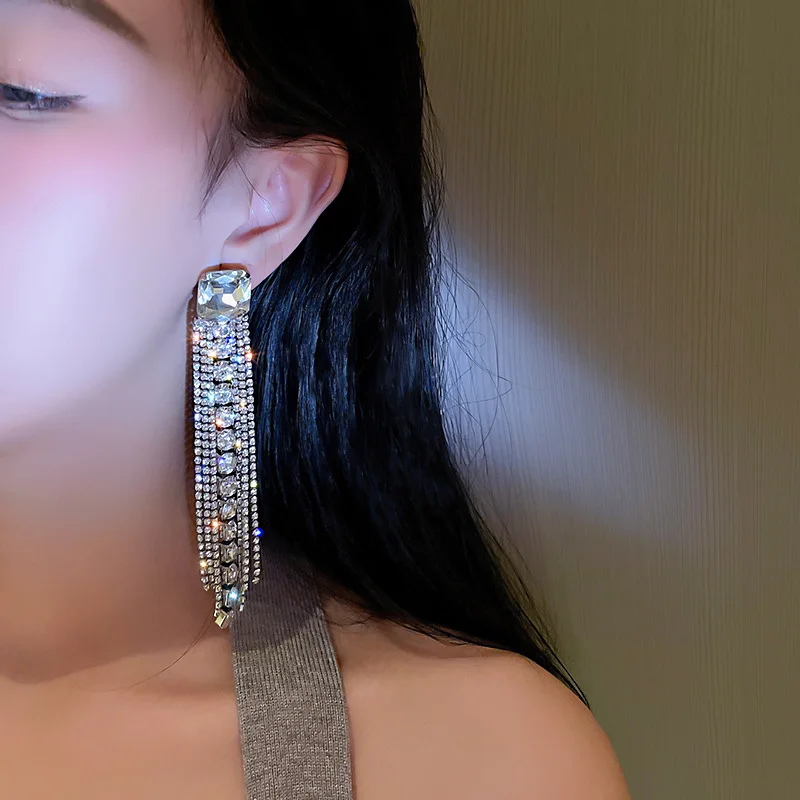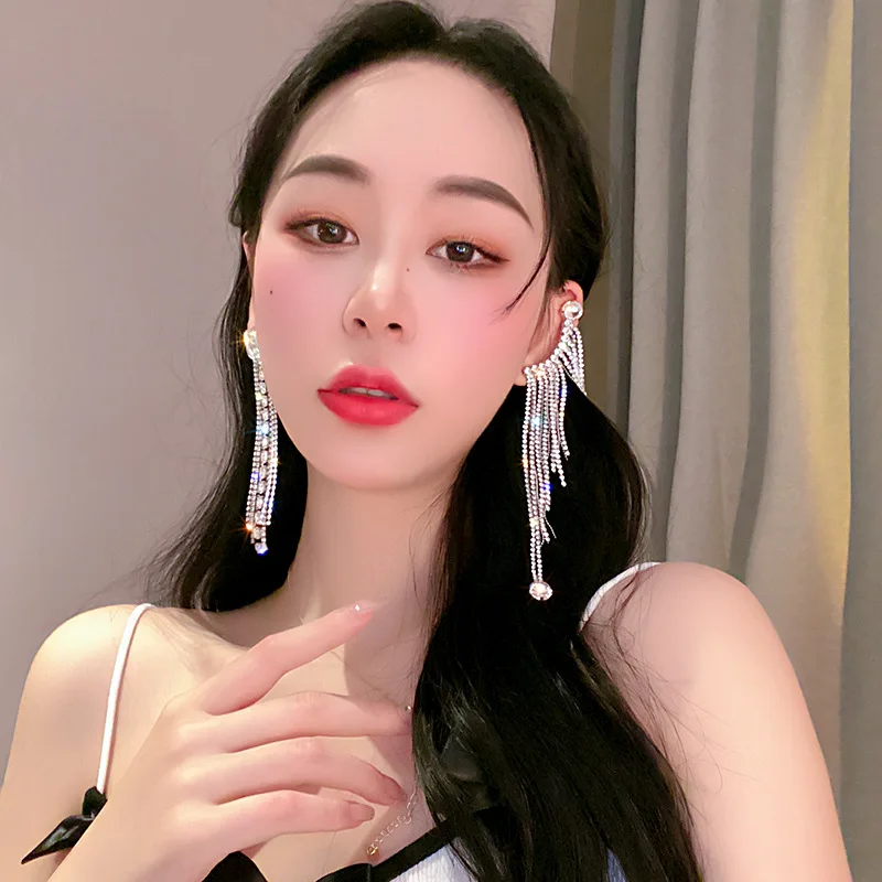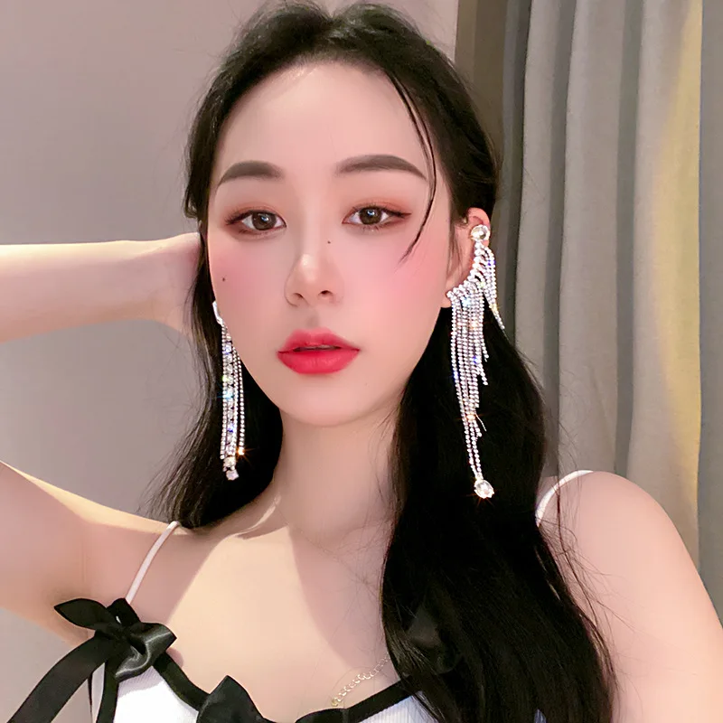 Luxury Asymmetric Shiny Rhinestone Long Tassel Drop Earrings Oversize Crystal Clip Earring Wedding Jewelry Valentine's Day Gift