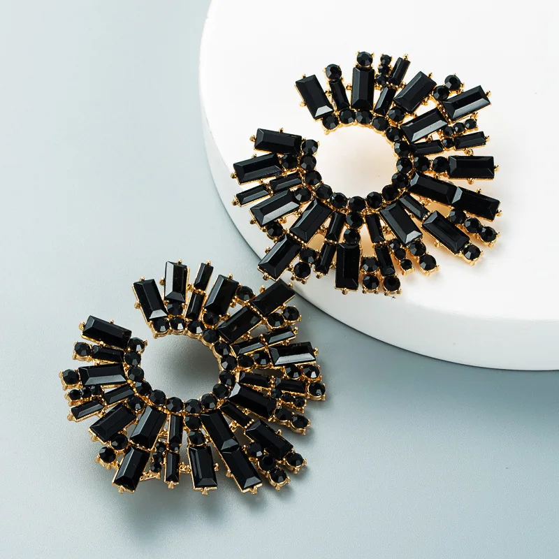 Luxury Exaggerated Crystal Earrings Alloy Inlaid Colored Rhinestones Sunflower Earrings Female Fashion Jewelry Accessories