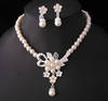 Luxury Female Crystal Flower Jewelry Set Charm Silver Color Wedding Dangle Earrings For Women Dainty White Pearl Chain Necklace