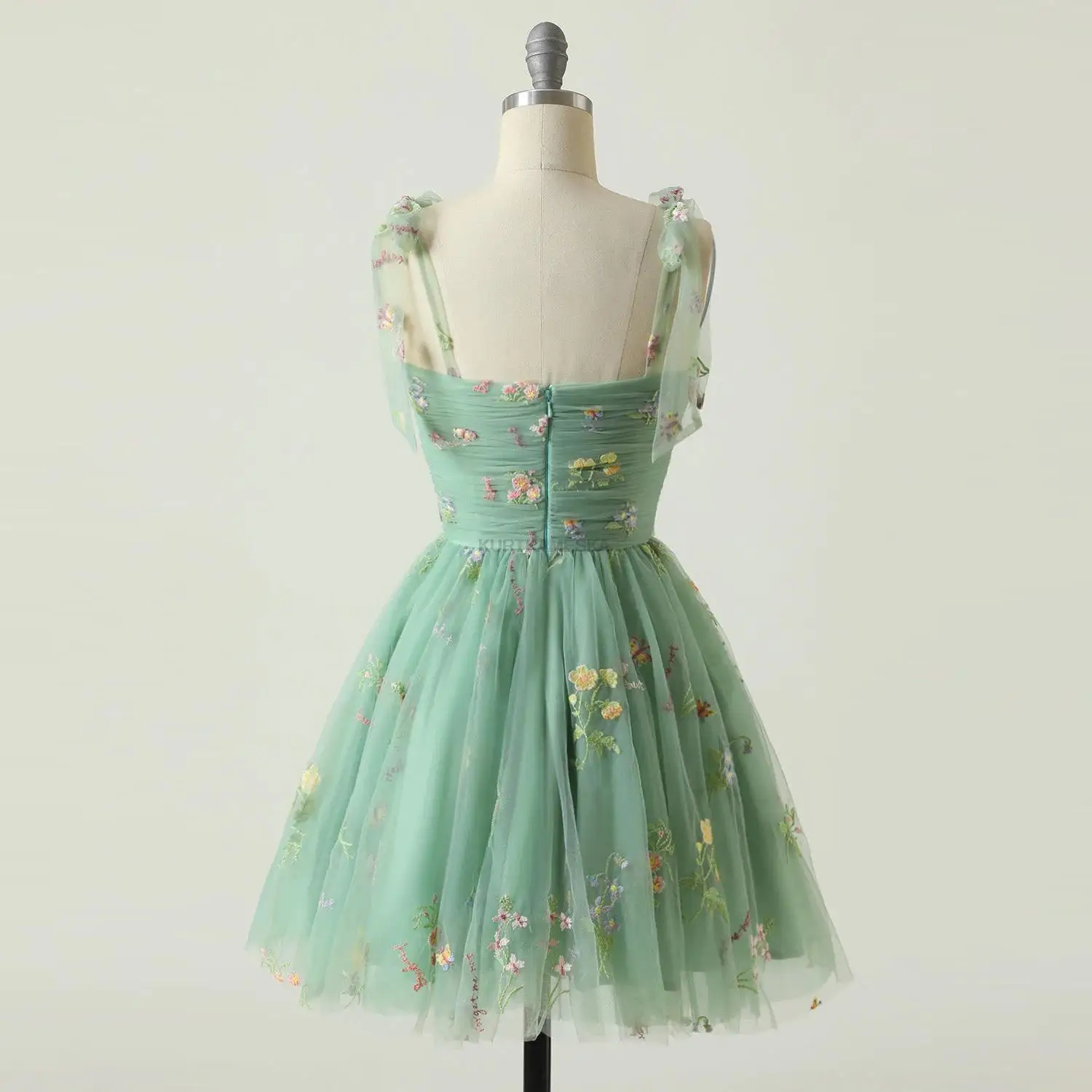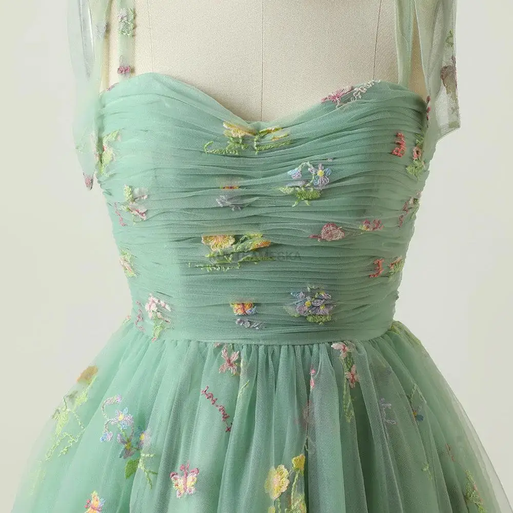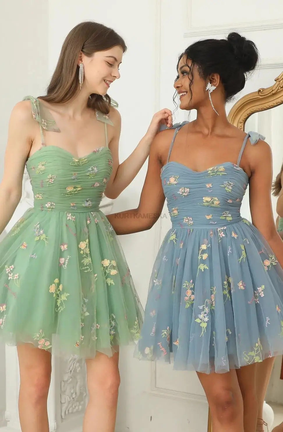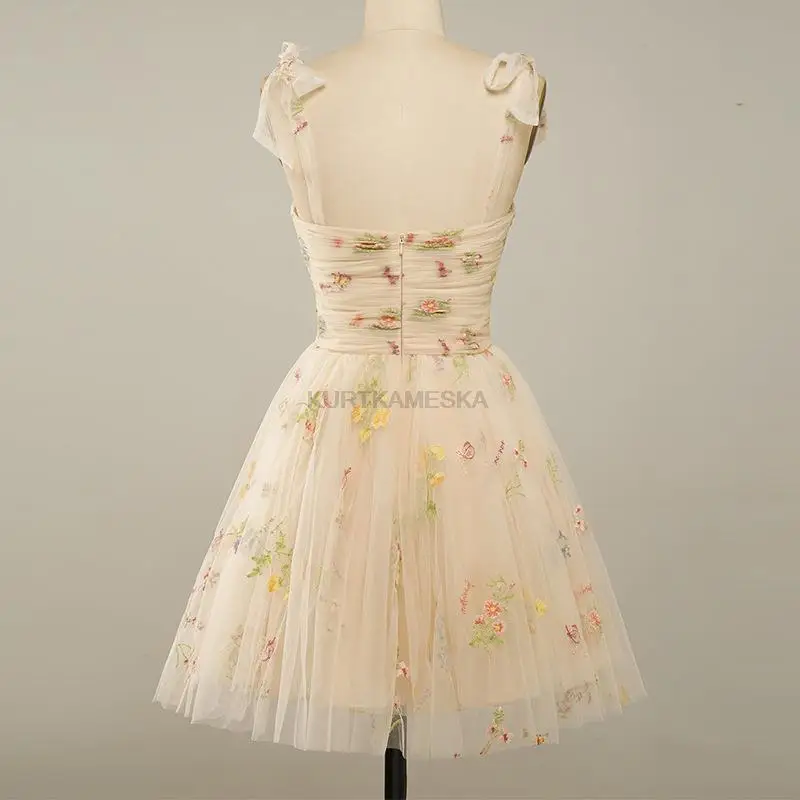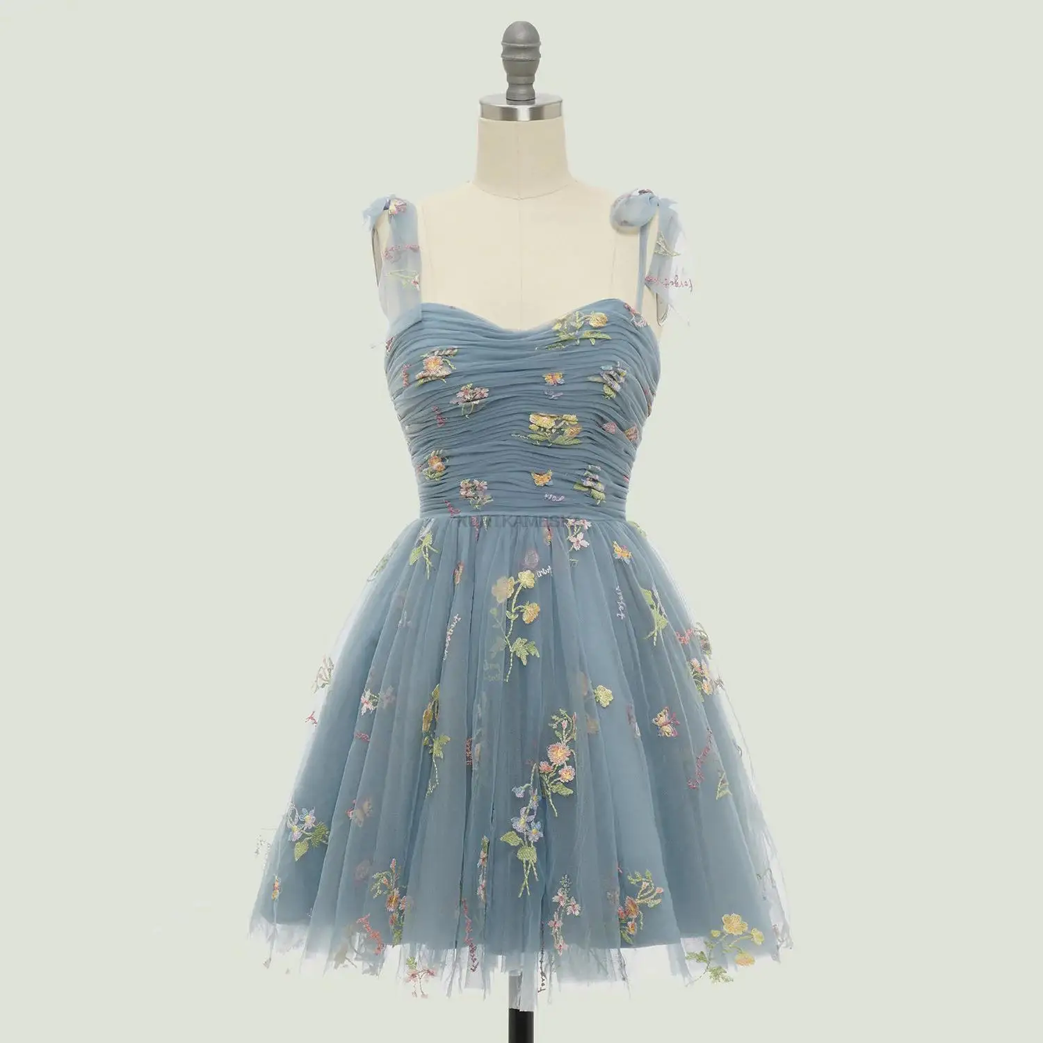 Luxury Floral Embroidery Prom Evening Dresses for Women 2023 Summer Elegant Suspender Mesh Party Formal Host Vacation Mini Dress