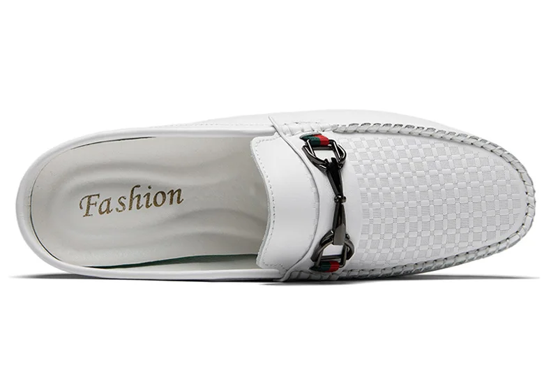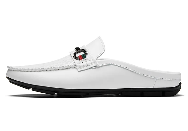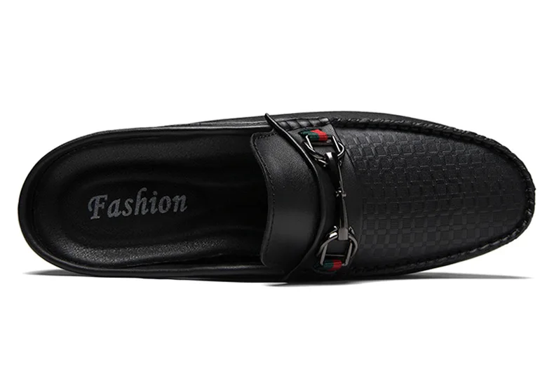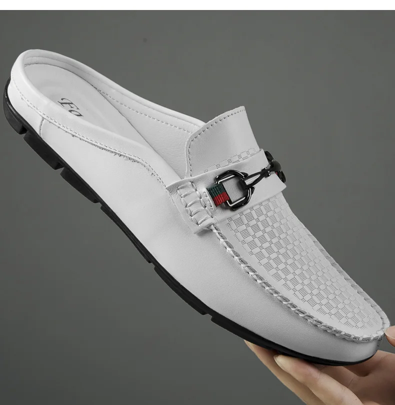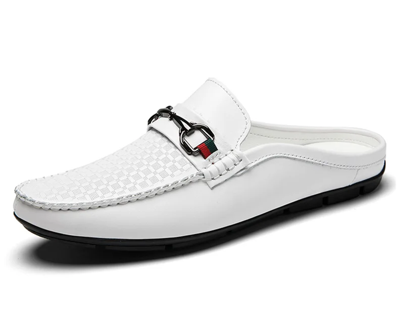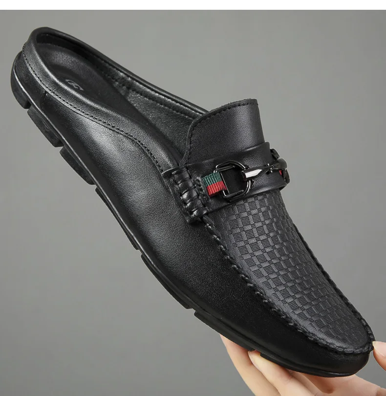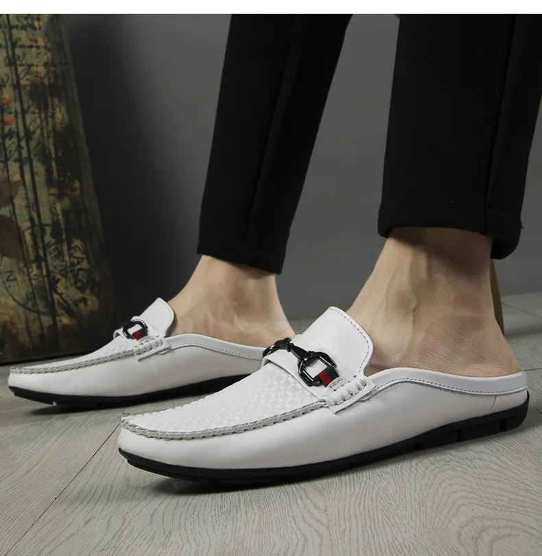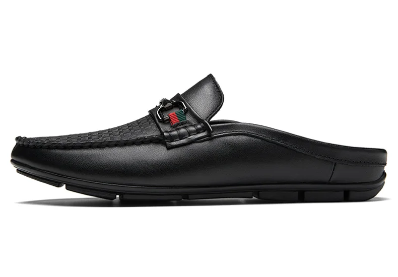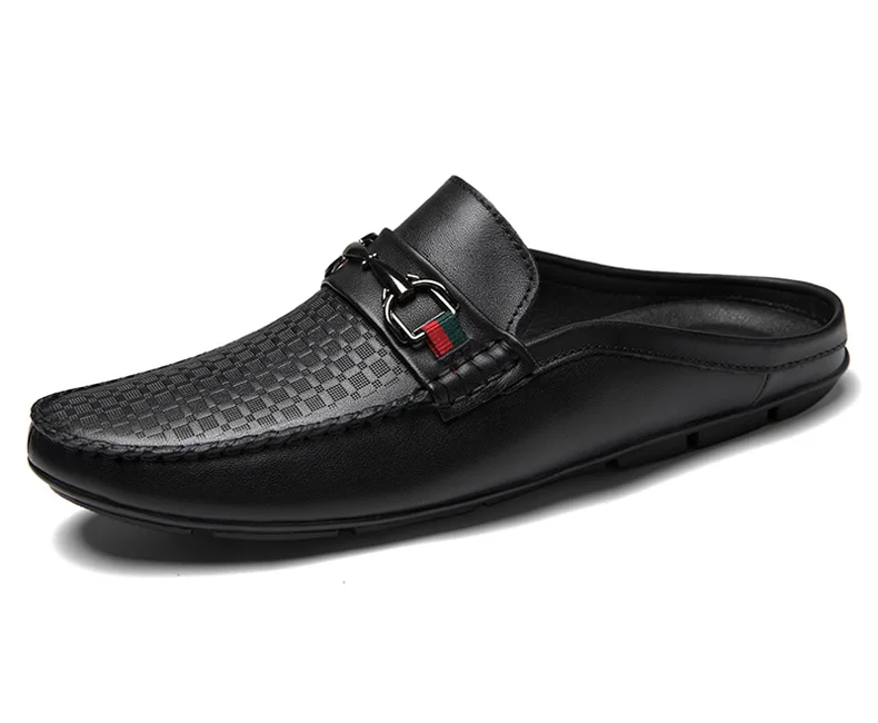 Luxury Shoes Brand Designer Summer Genuine Leather Casual Slip On Half Shoes For Men Loafers Flats Slippers For Narrow Thin Foot