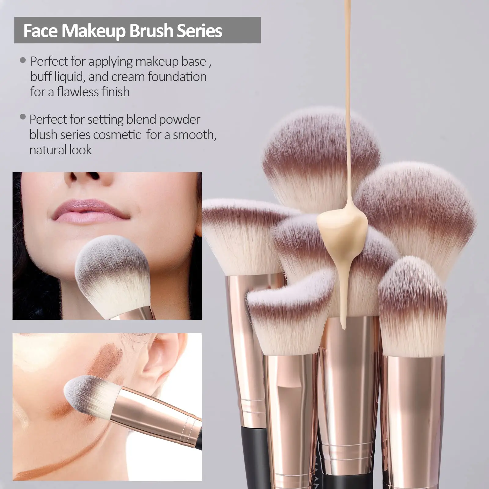 2. Premium Synthetic Bristles: Soft-feeling makeup brush set, shedding and cruelty-free synthetic hair, thicker bristles make it easier to grip and blend makeup for a softer, more natural transition for a flawless finish all the time.