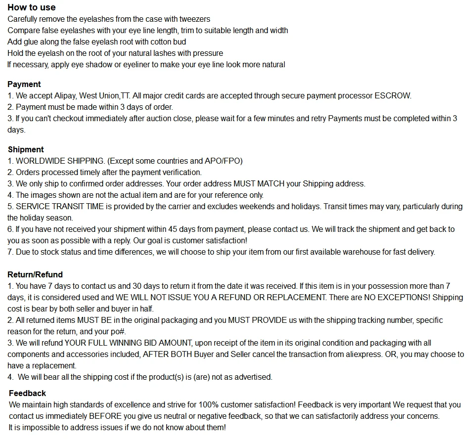 • If you did not receive the product within the guaranteed time( 45 days not including 2-5 day processing) you can request a refund or a reshipment.