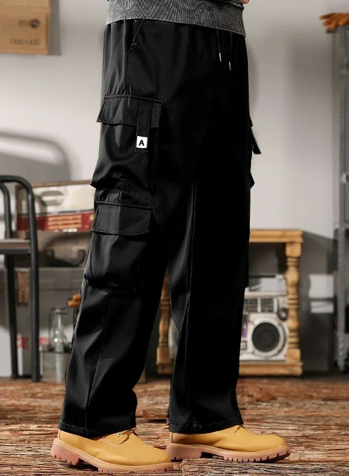 Male Trousers Straight Black Multipockets Multi Pocket Autumn Men’s Cargo Pants Casual Luxury Korean Style Street Vintage Slacks