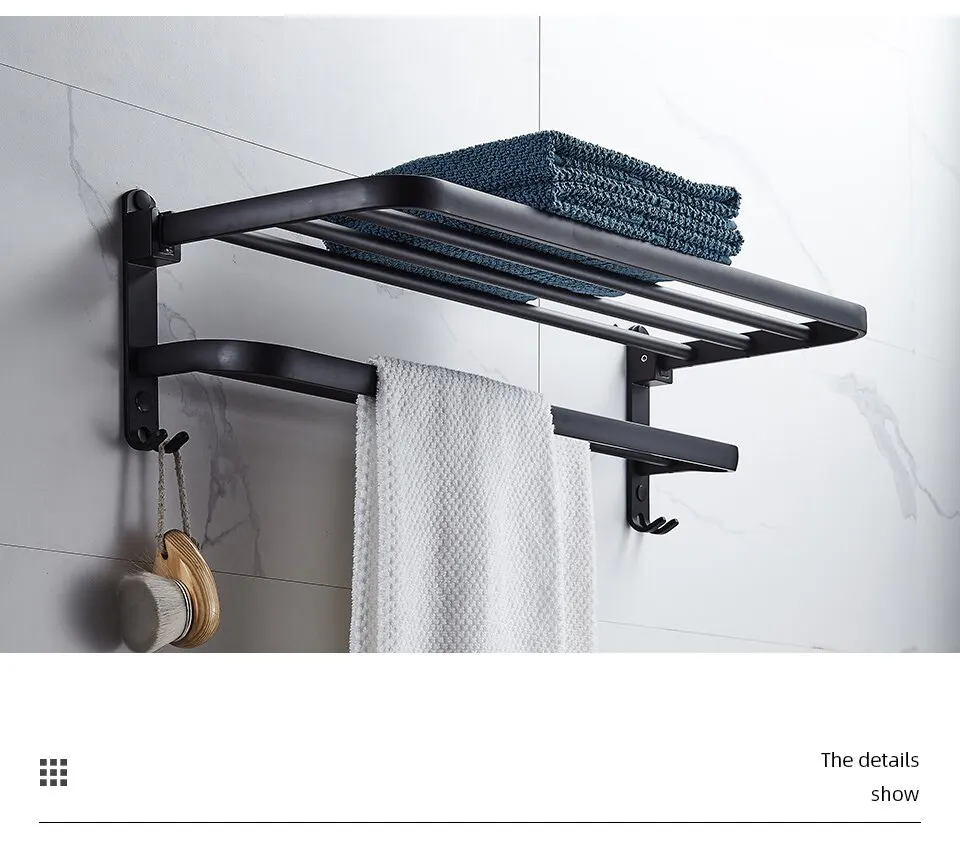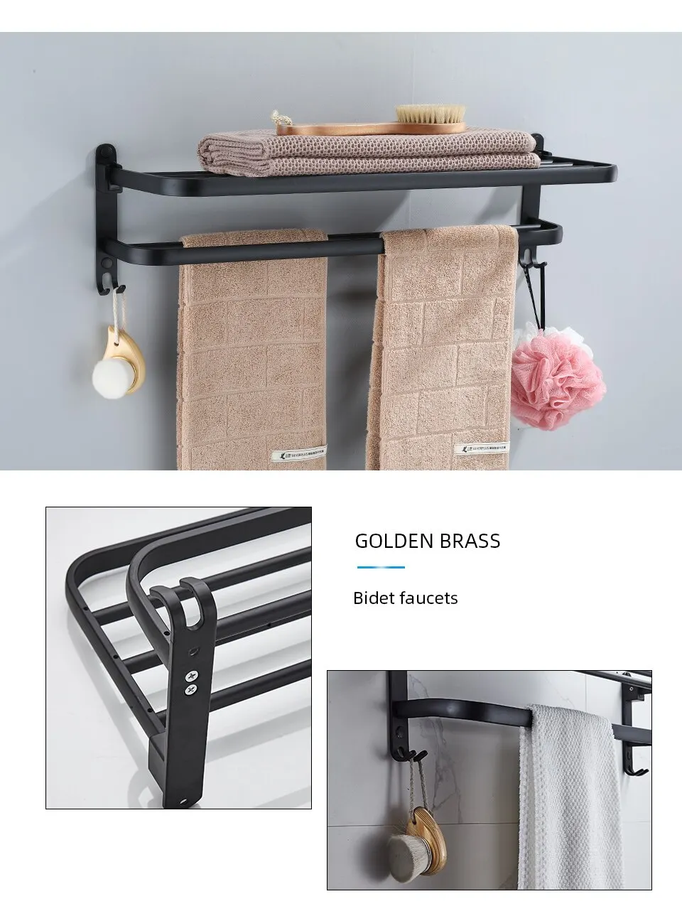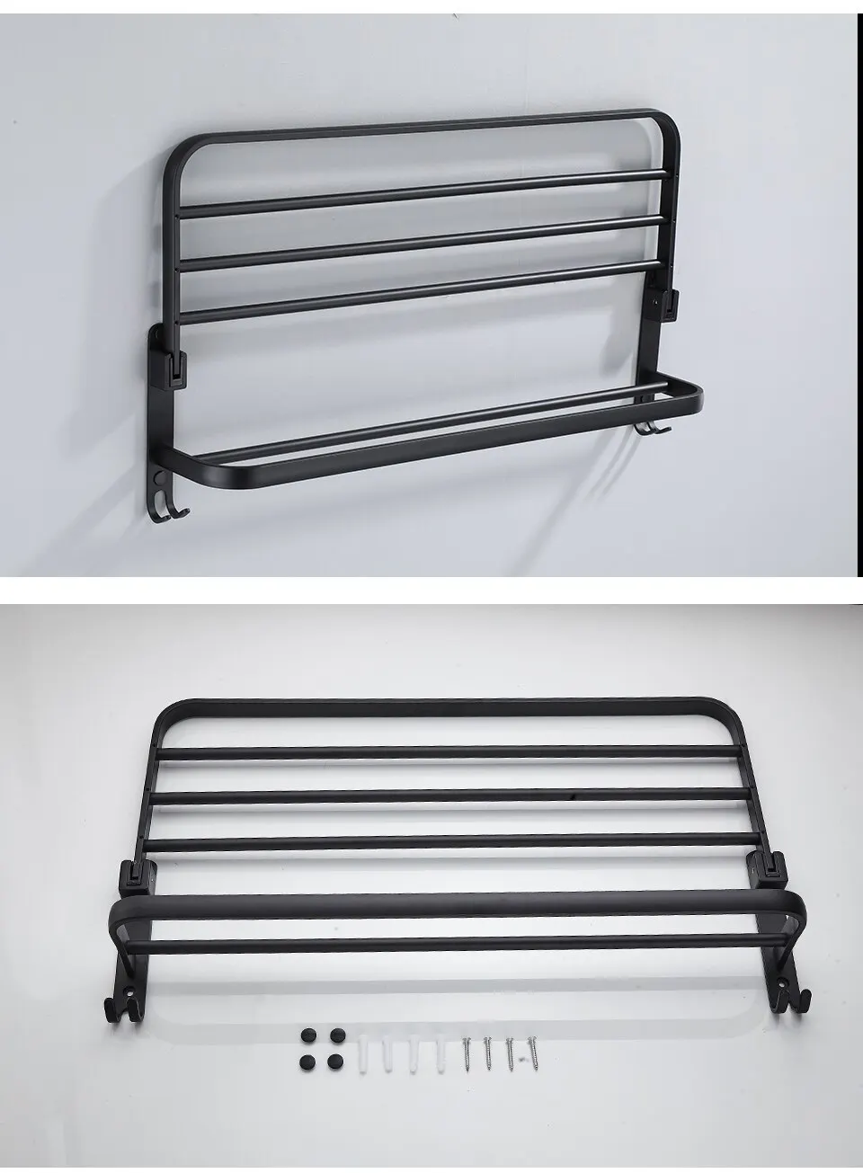 Matte Black 50CM Folding Holder With Hook Towel Holder Wall Mount AluminumTowel Rack