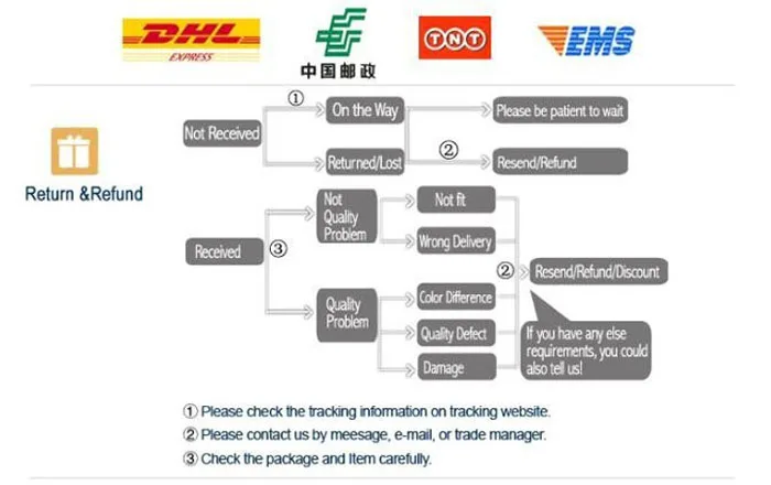 • If you did not receive the product within the guaranteed time( 45 days not including 2-5 day processing) you can request a refund or a reshipment.