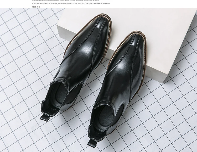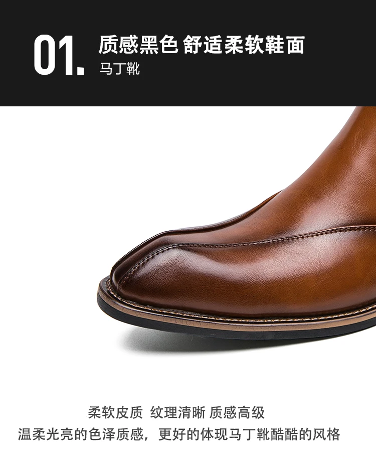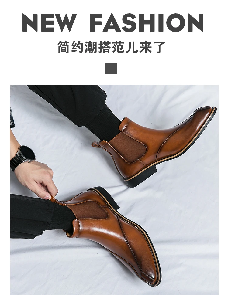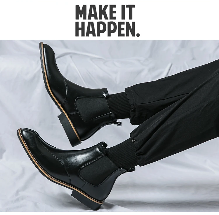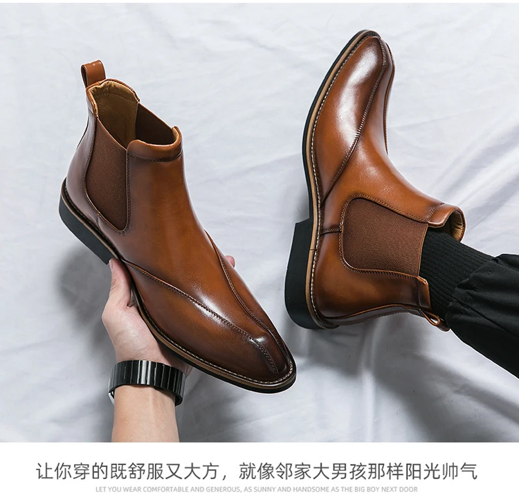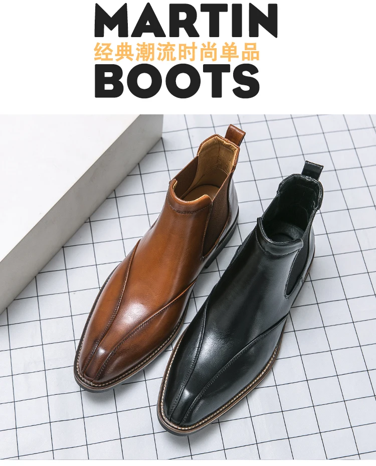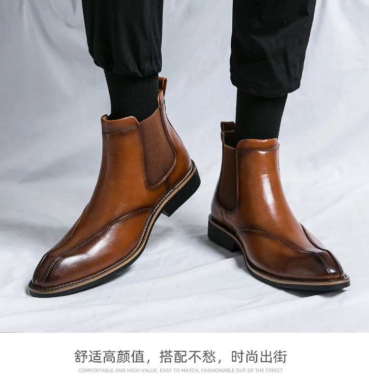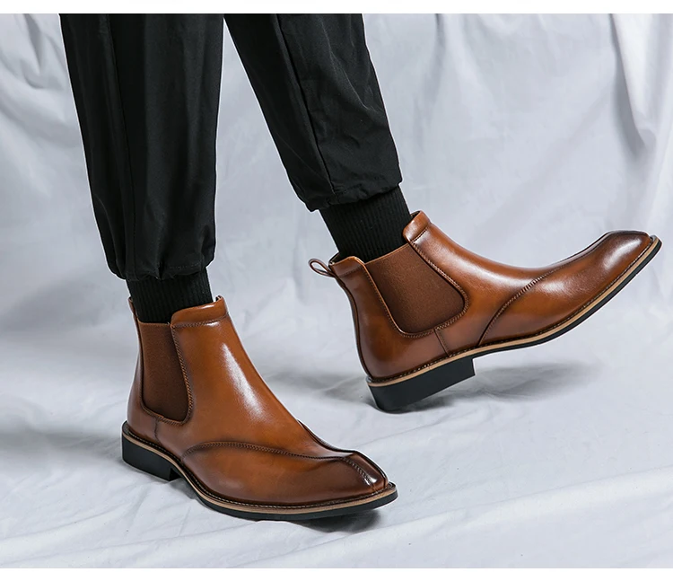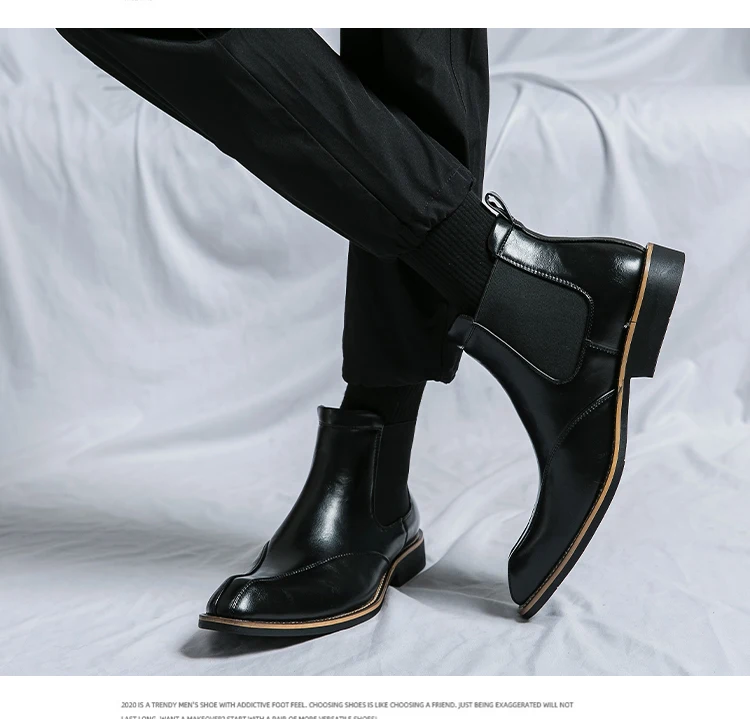 Men Trendy Fashionable Pointed Business Boots With White Line On Midsole