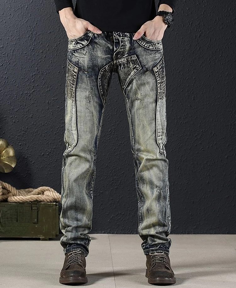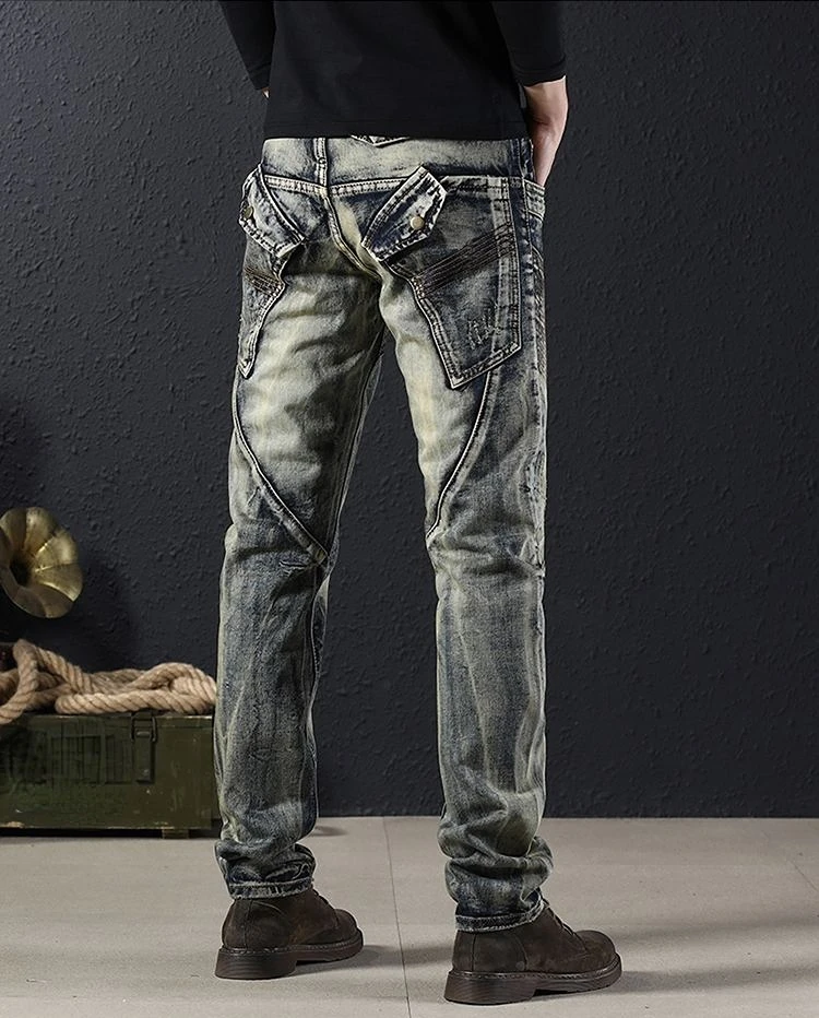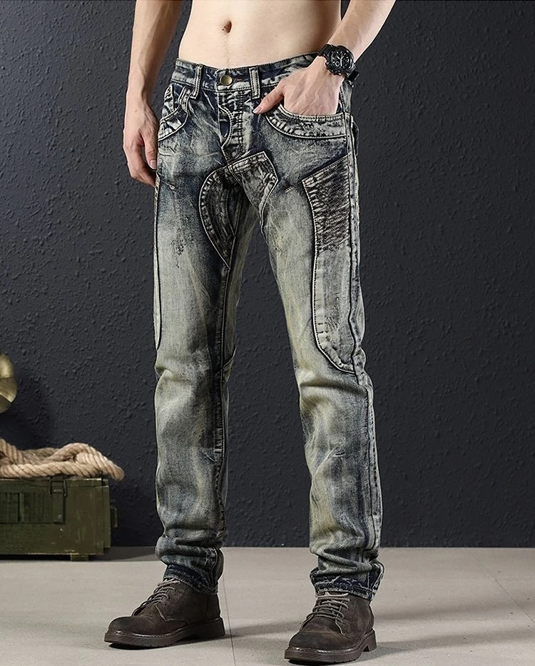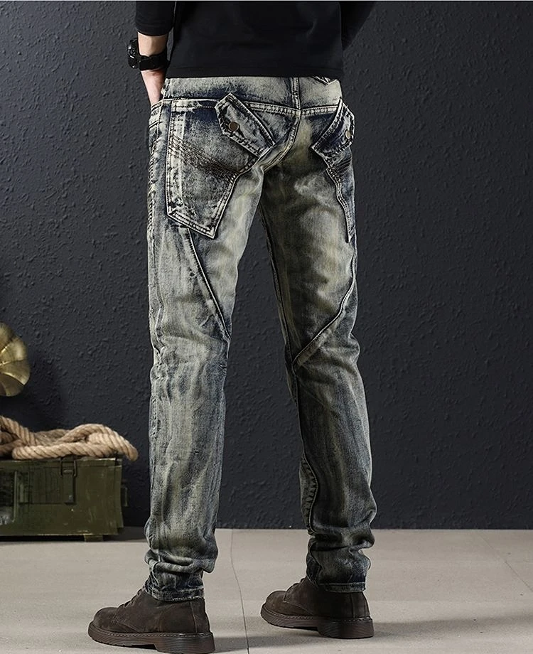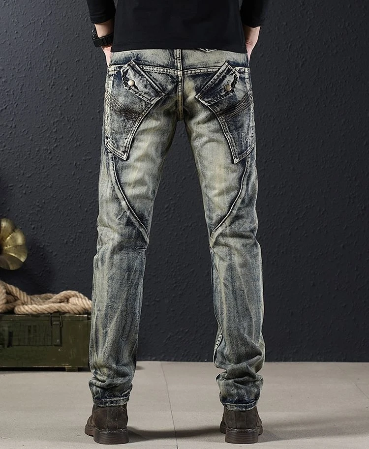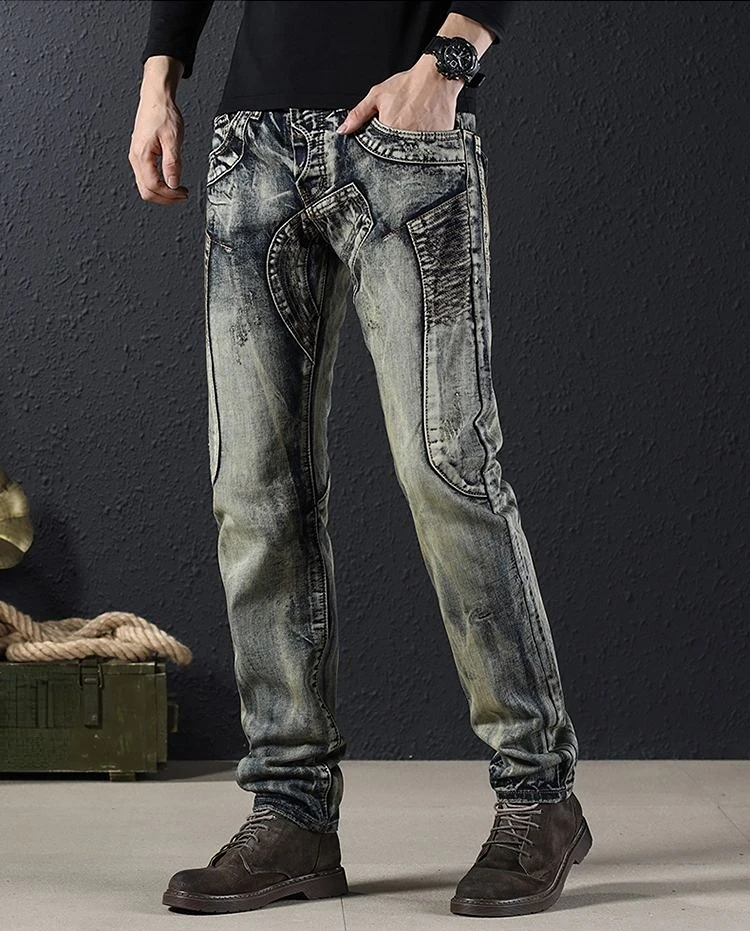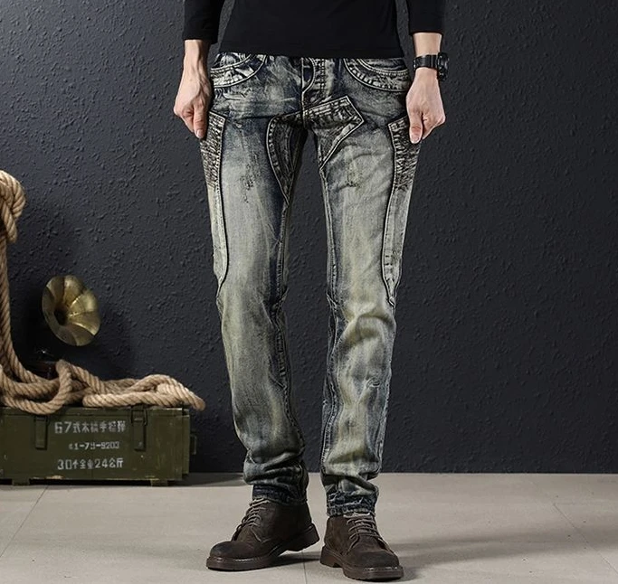 Mens Cowboy Pants Stretch Hip Hop Korean Jeans for Men Fashion Baggy Straight Original Trousers New In Casual Low Rise Washed XL