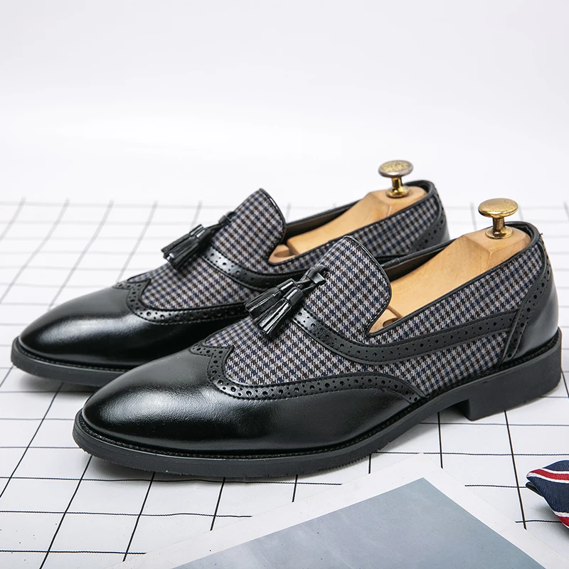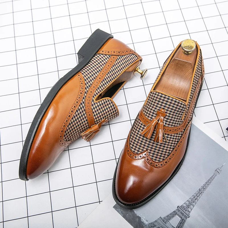 Mens Leather Loafers slip on tassel Wedding Party Men Shoes Luxury brand Noble Elegant Dress Shoes for Men moccasins big size 48