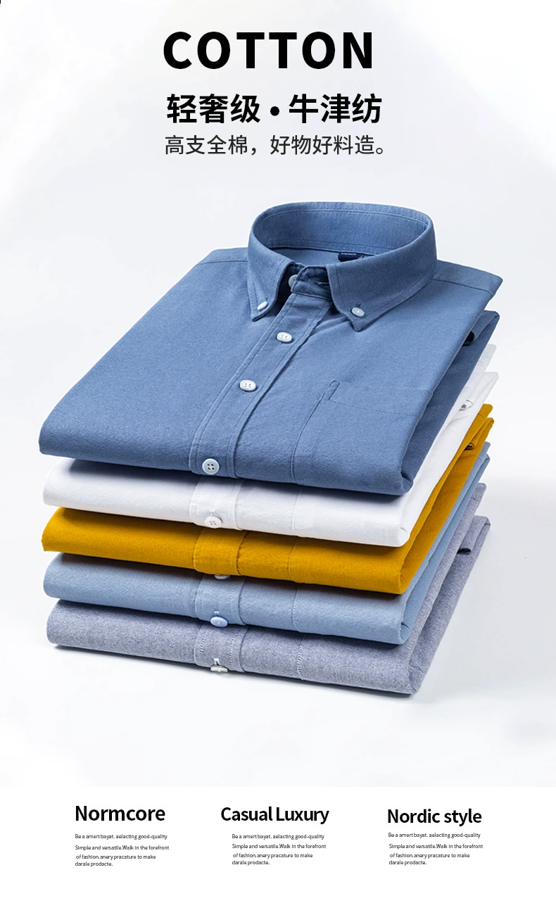 Men’s Long Sleeve Oxford Plaid Striped Casual Shirt Front Patch Chest Pocket Regular-fit Button-down Collar Thick Work Shirts