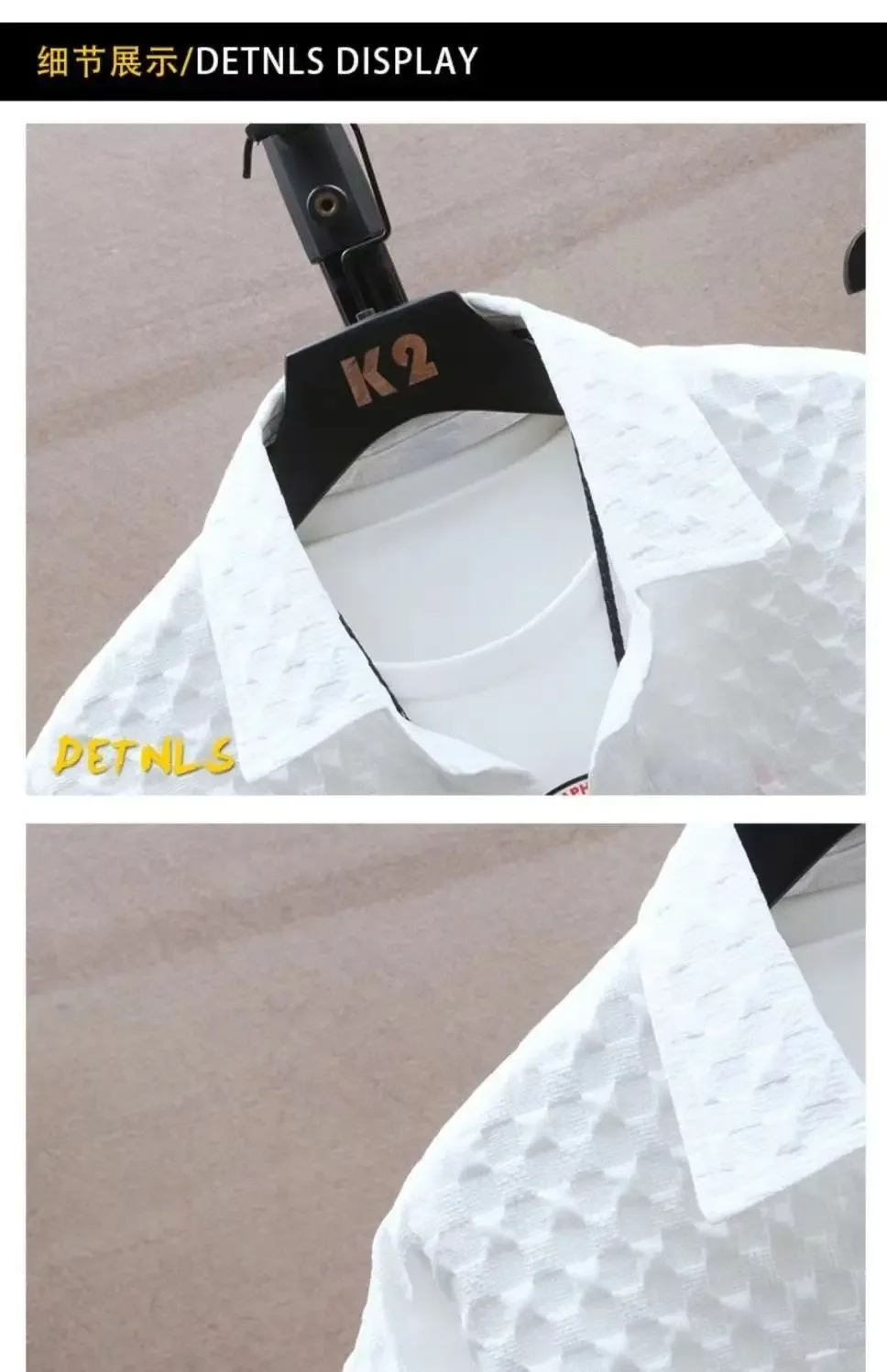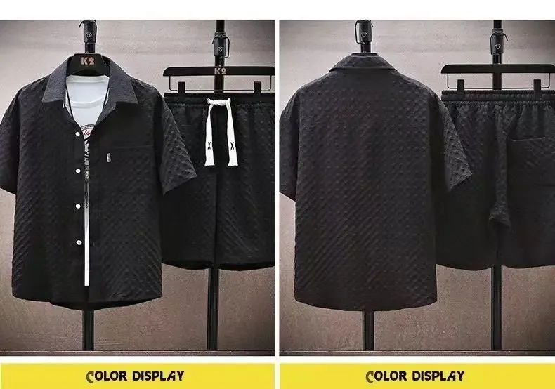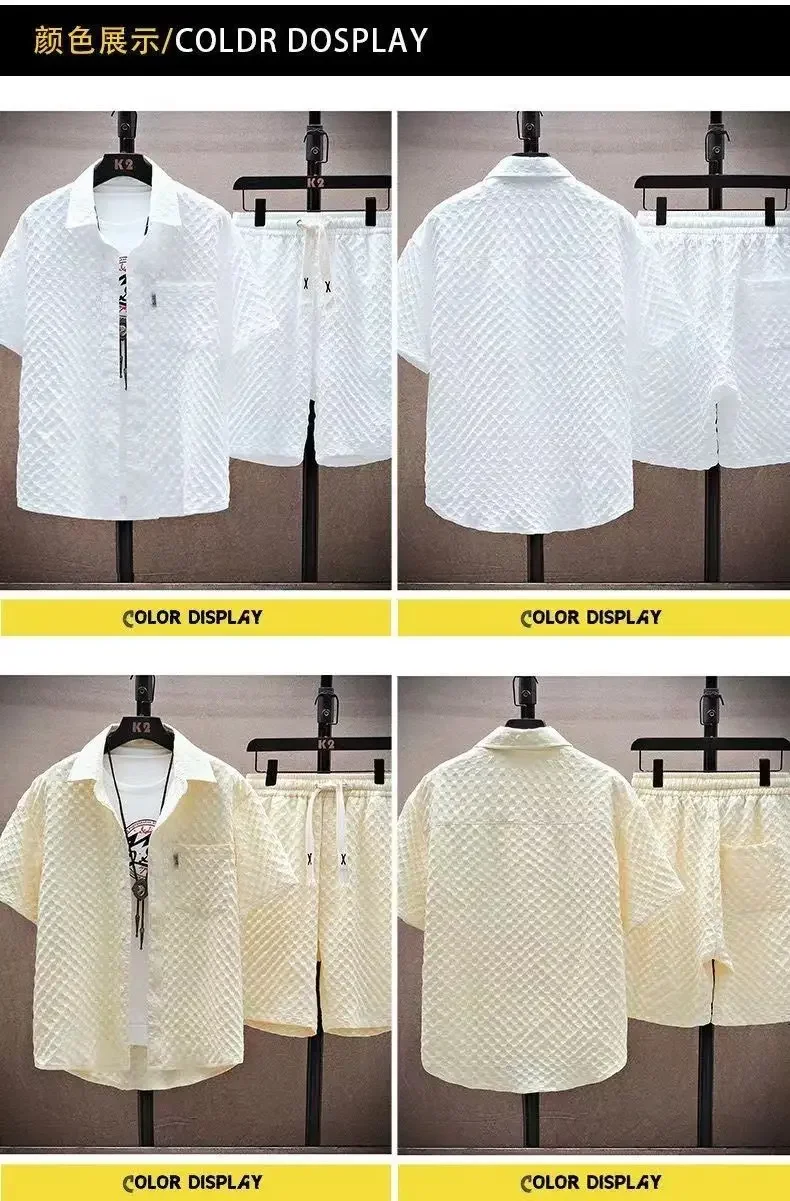 Men’s Set High Quality Ice Silk Plaid Short Sleeved Lapel Shirt Shorts Two-piece for Men Korean Luxury Casual Oversize Clothing