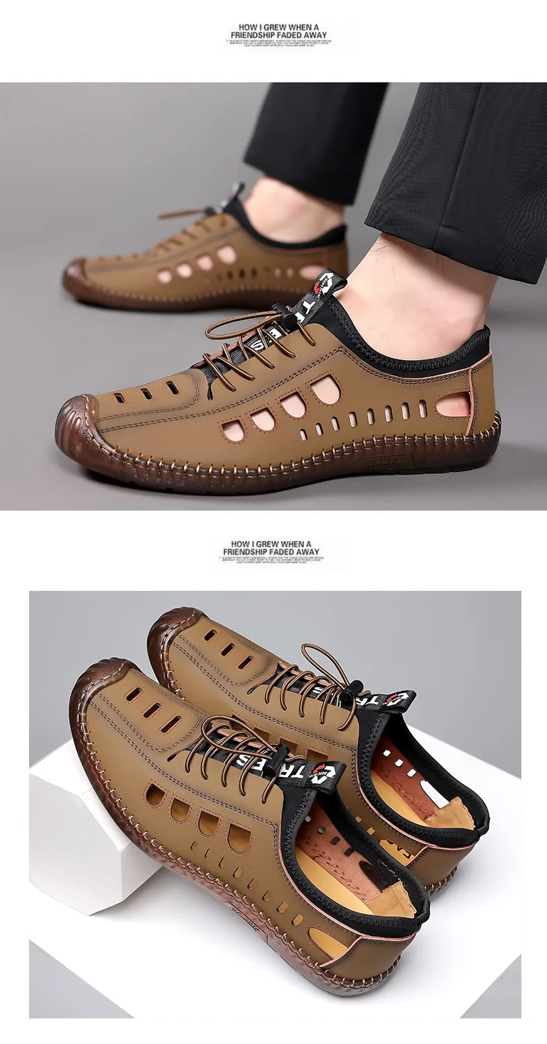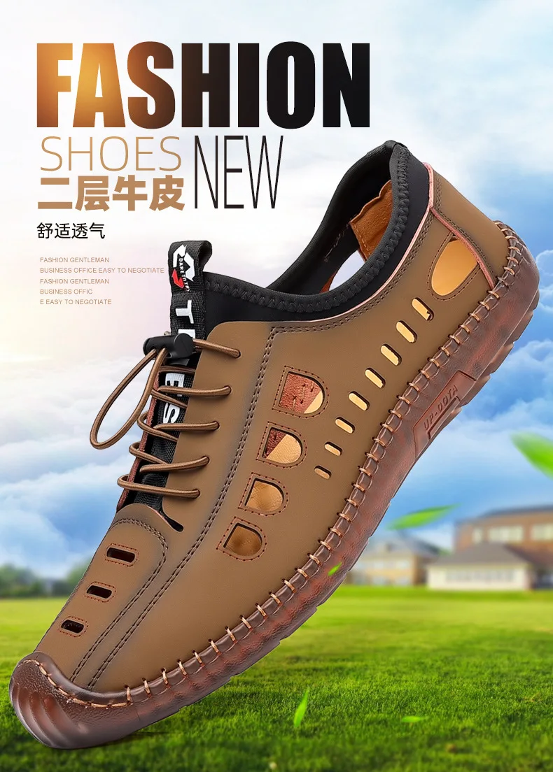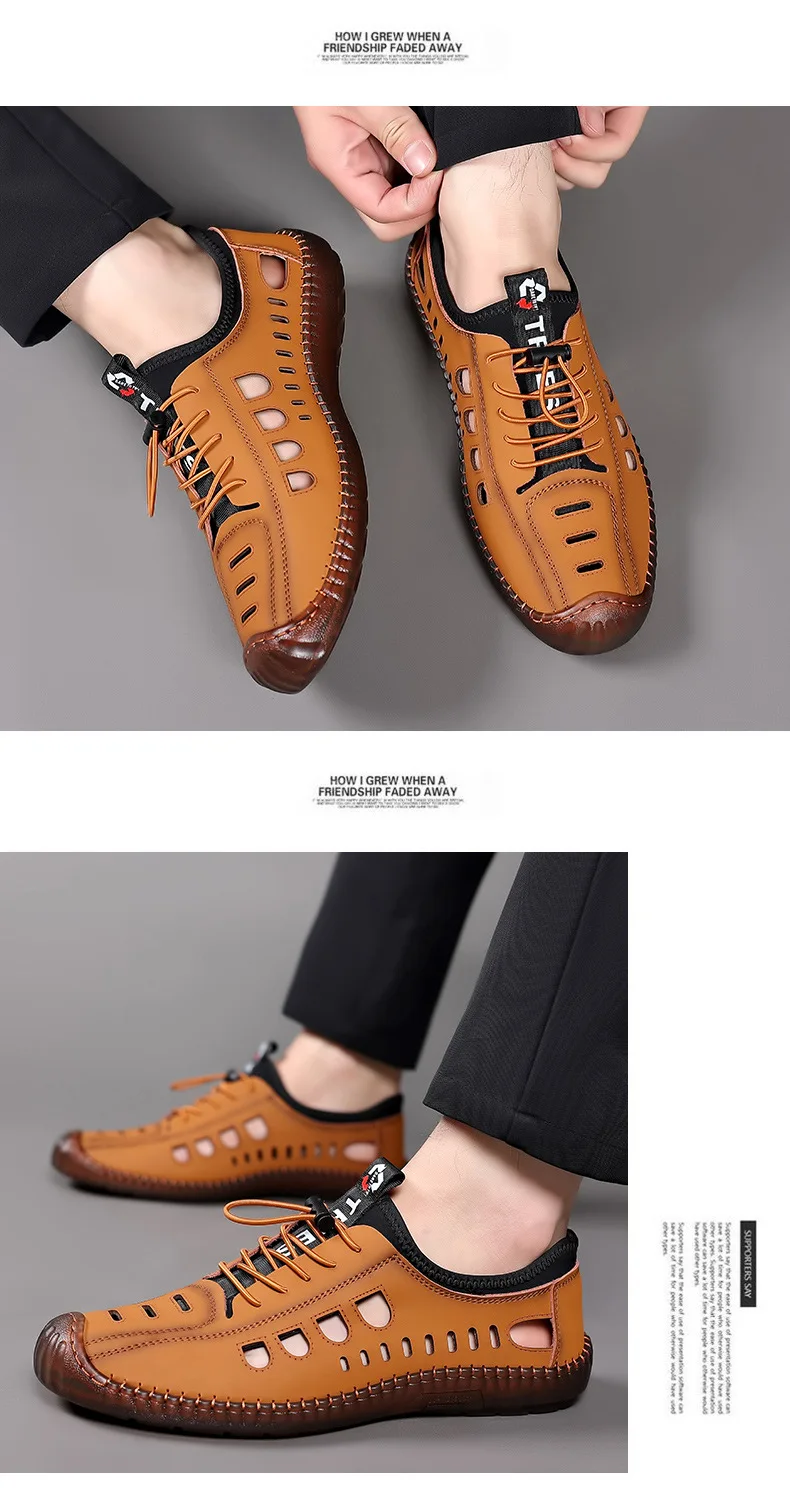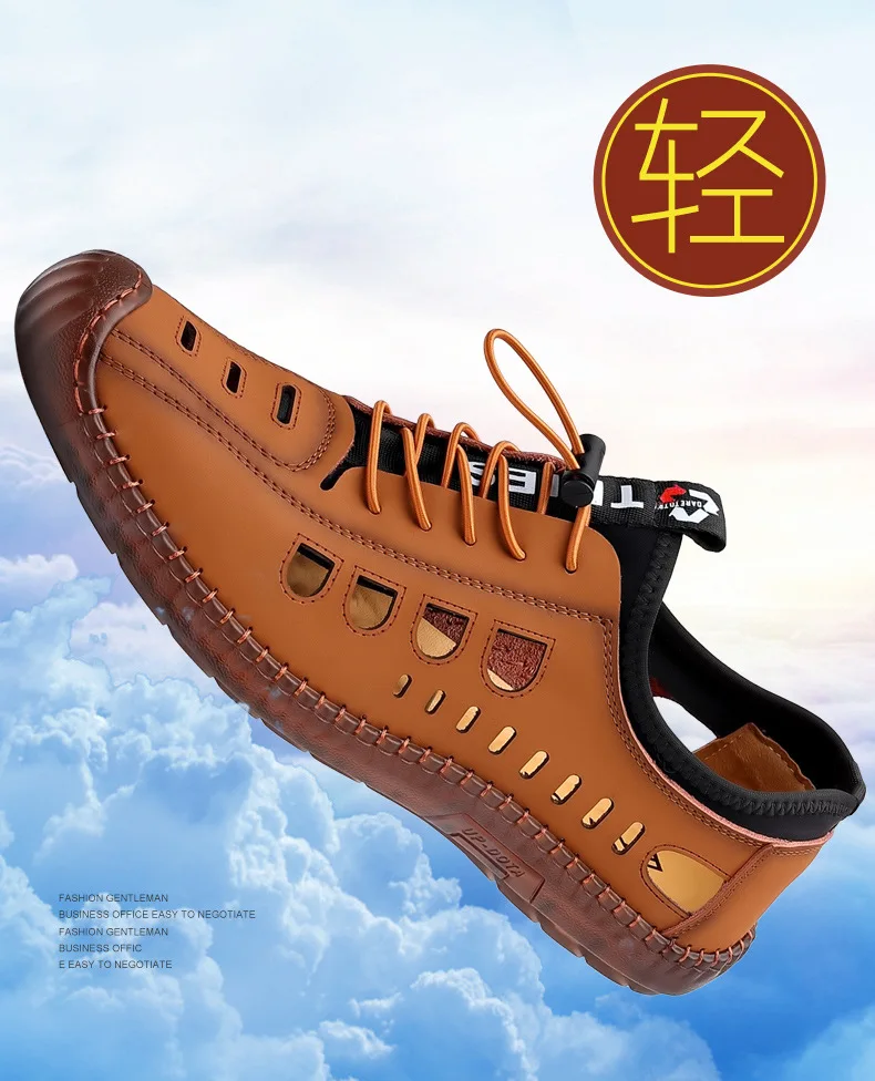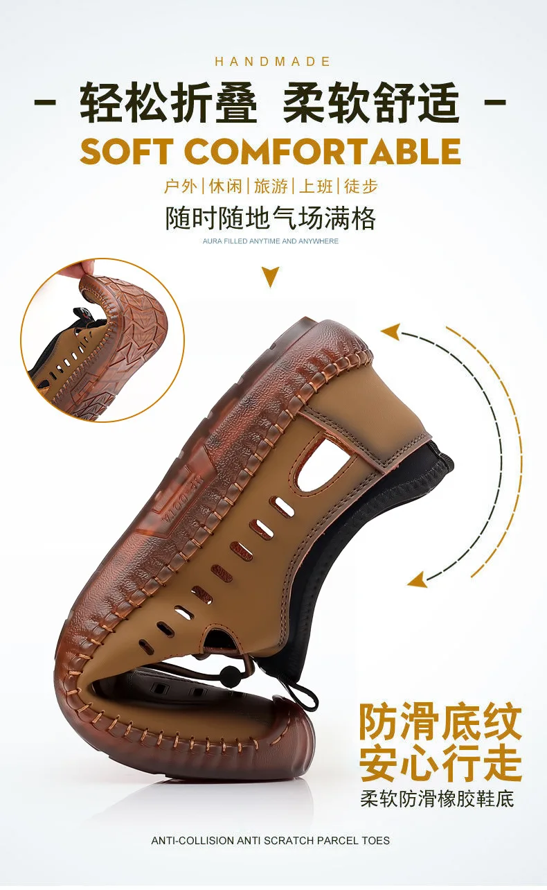 Men’s Soft Leather 2024 Summer Men Leather Sandals Breathable Non-slip Cow Tendon Sole Casual Leather Shoes Outdoor Beach Shoes