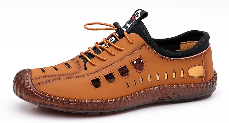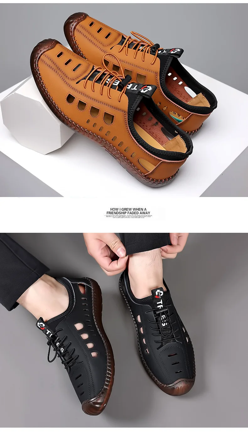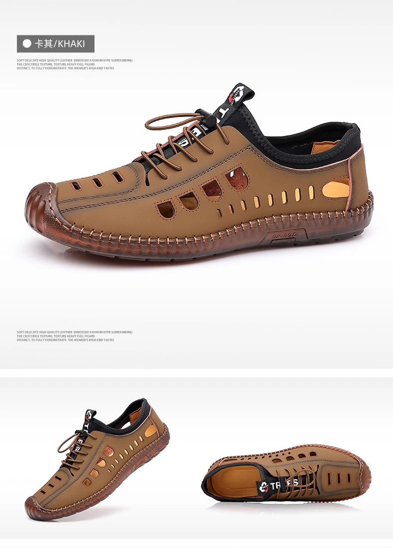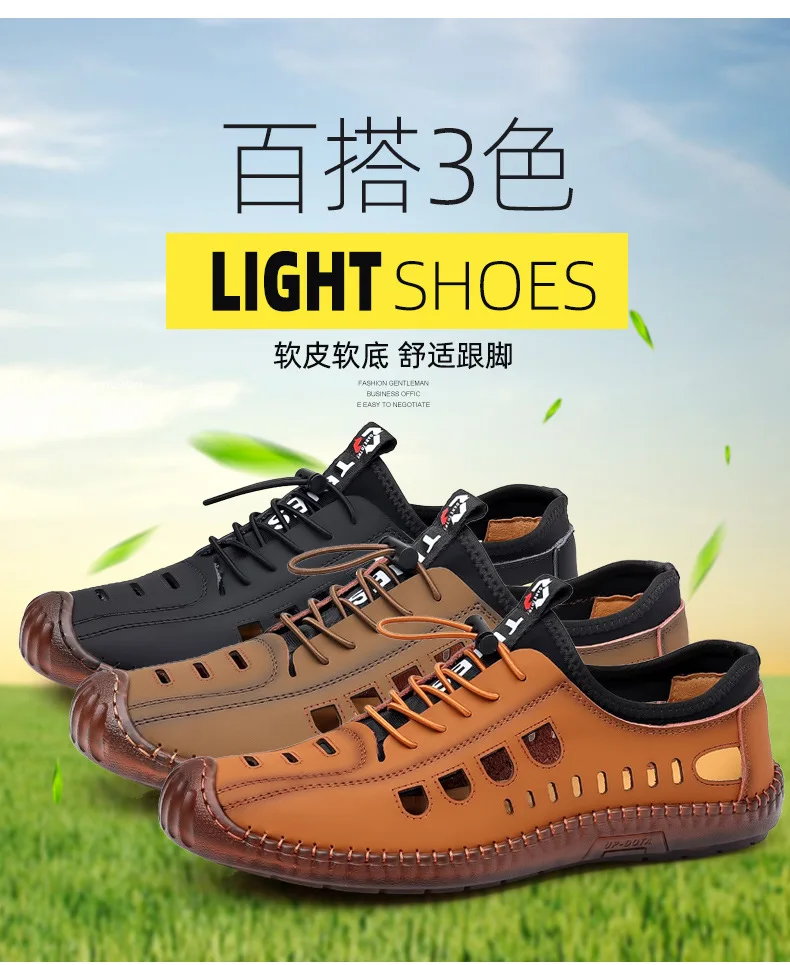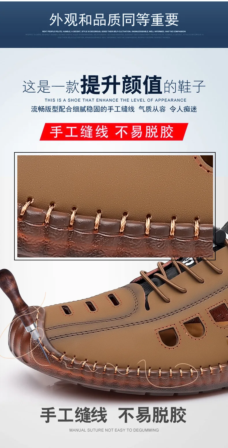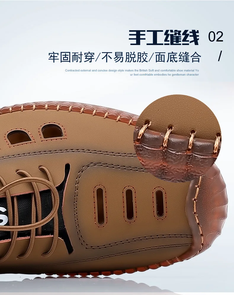Men’s Soft Leather 2024 Summer Men Leather Sandals Breathable Non-slip Cow Tendon Sole Casual Leather Shoes Outdoor Beach Shoes