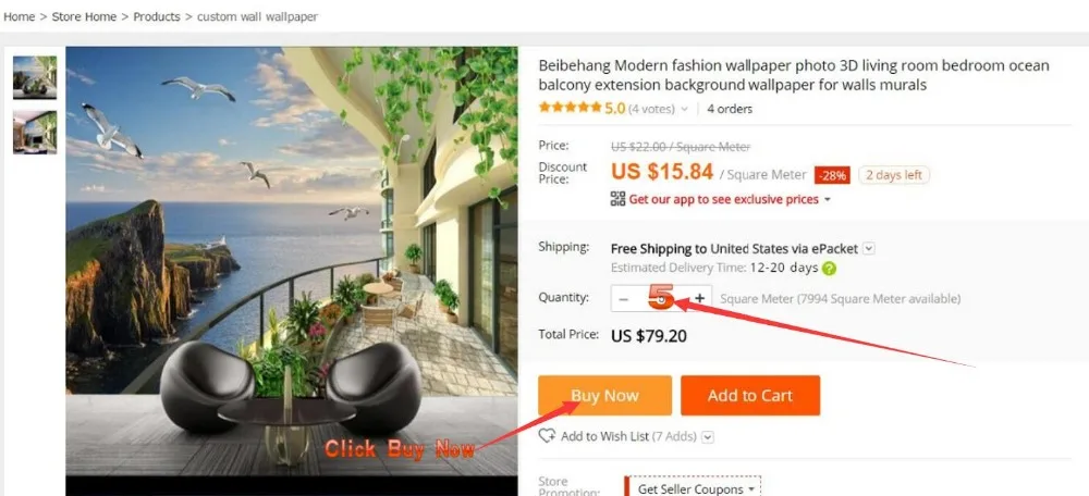 If you need 5 square meters of fresco wallpaper, please select “Quantity 5” here. Also mark the details of your wall width and order height.