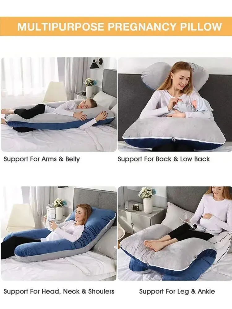 2.Pregnant mothers who lack a sense of security can choose a “U-shaped pillow”, which surrounds the body and provides sufficient support for the pregnant woman’s waist, stomach, back, etc. You can also rest on the back pillow arm, which also saves the trouble of buying a separate elbow pillow