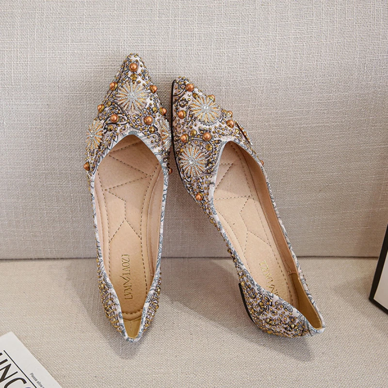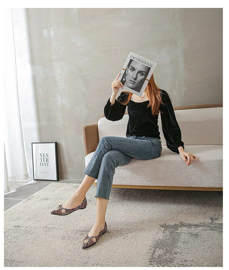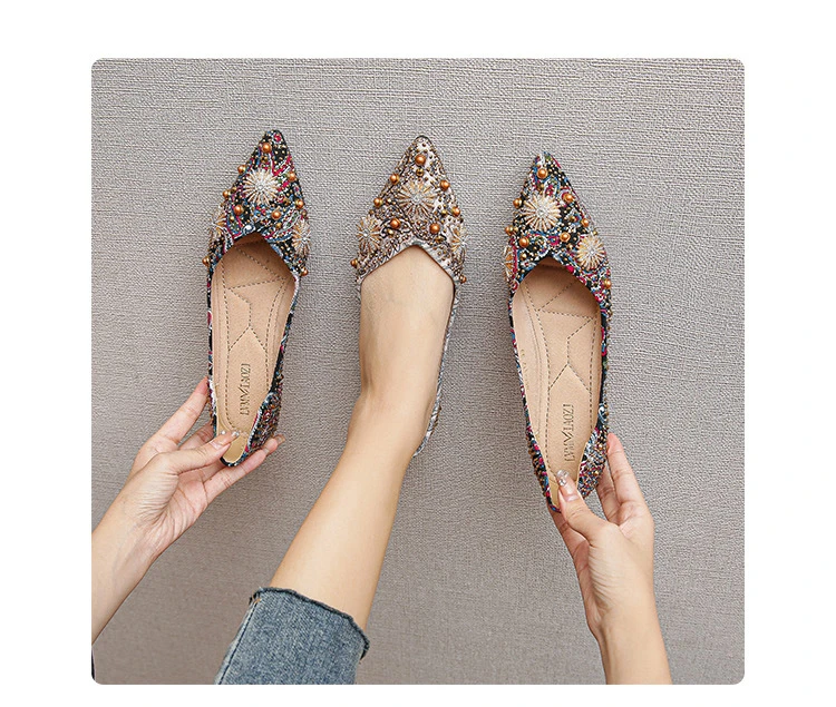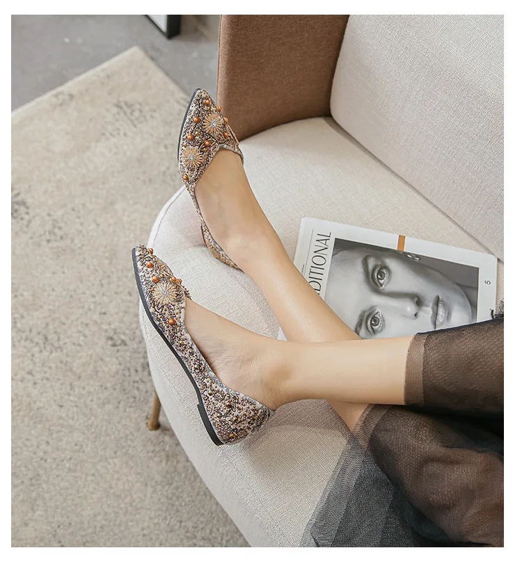 New 2024 Pointed Toe Women Flat Rhinestones Loafers Autumn Rivets Classic Ladie Flats Shoes Women’s Ballet Flats Soft Boat Shoes